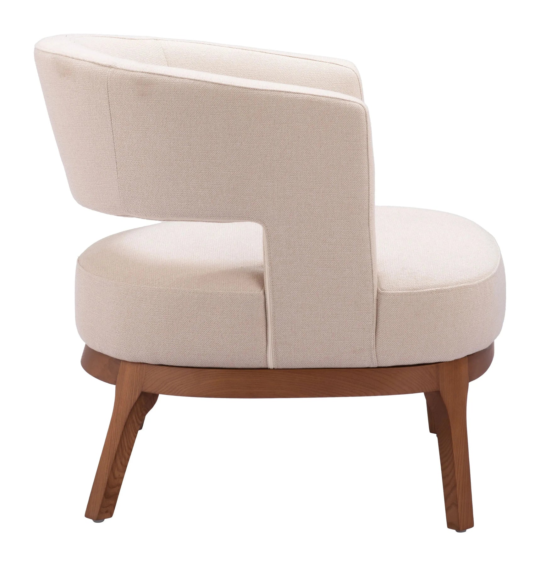 Beige Upholstered Accent Chair – Polyester Fabric & Ash Wood Frame | Living Room & Dining | Trufairs