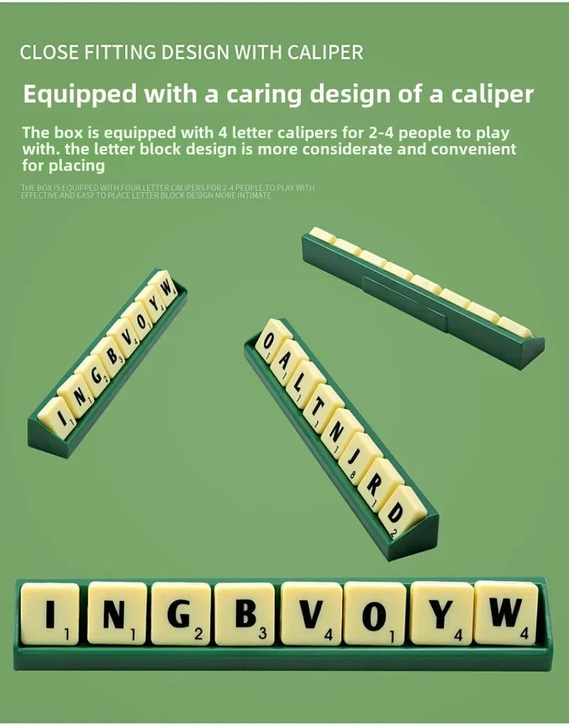 Package: 1 game boards,100 letter chess, 4 word calipers, , 1 instruction manual