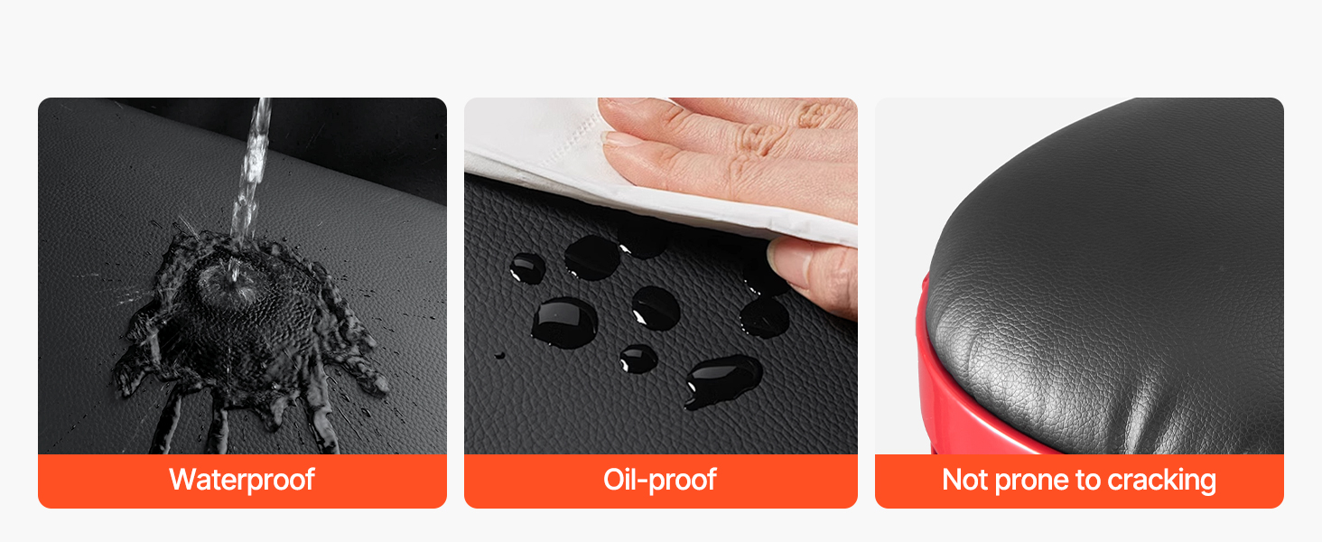 - Waterproof Cushion: Our mechanic seat features a large, soft pearl cotton cushion that allows long hours of sitting while working. The surface is waterproof and oil-resistant PU synthetic leather, which is easy to wipe clean, making it ideal for garage, roadside, and indoor/outdoor repair and cleaning tasks.