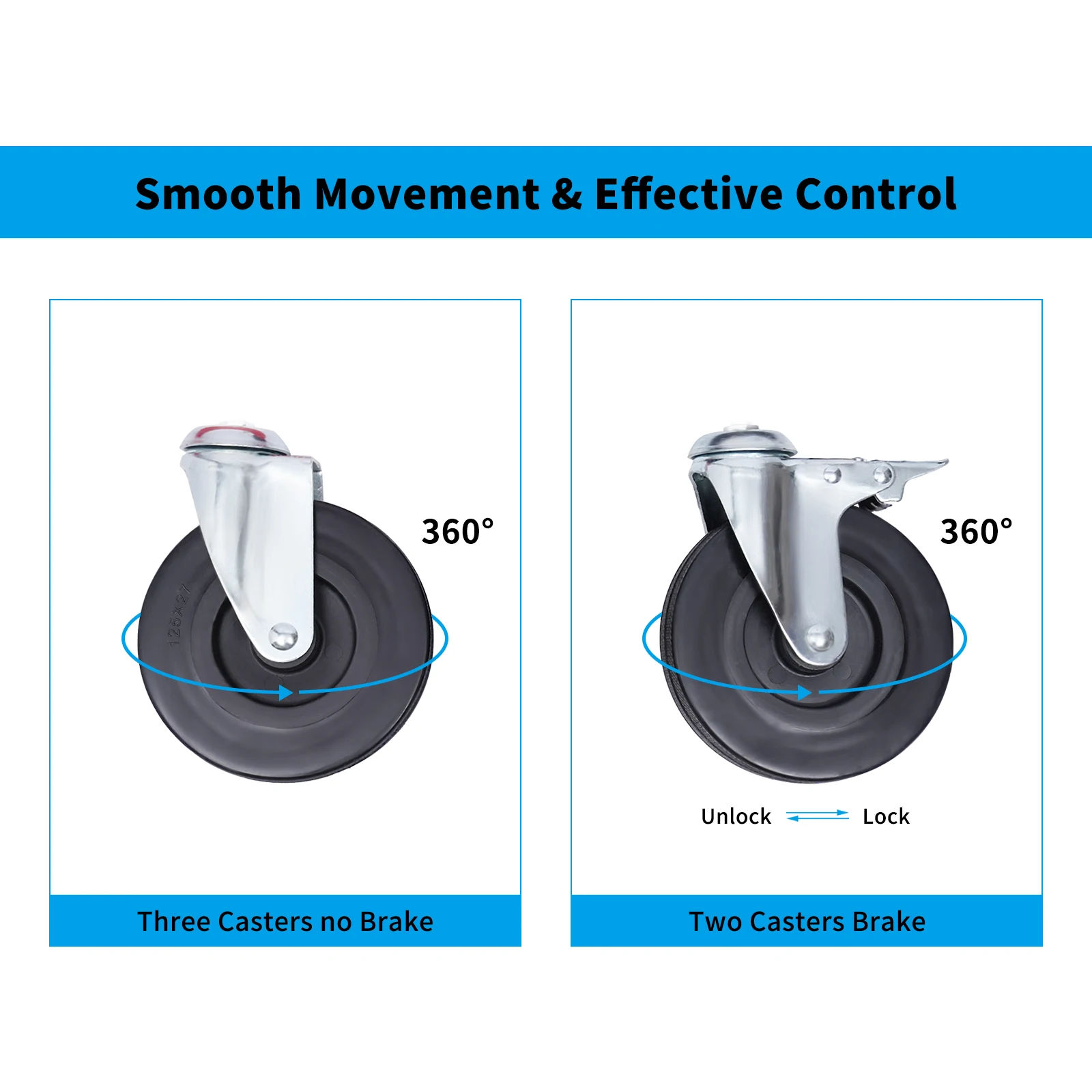 Universal Wheels: It is equipped with 5 universal wheels on the bottom, which are shock-absorbent, non-slip, wear-resistant, silent, and can be applied to any floor or carpet to achieve flexible movement in all directions without scratching the floor. Two of them come with brakes to keep stability when working on ramps.
