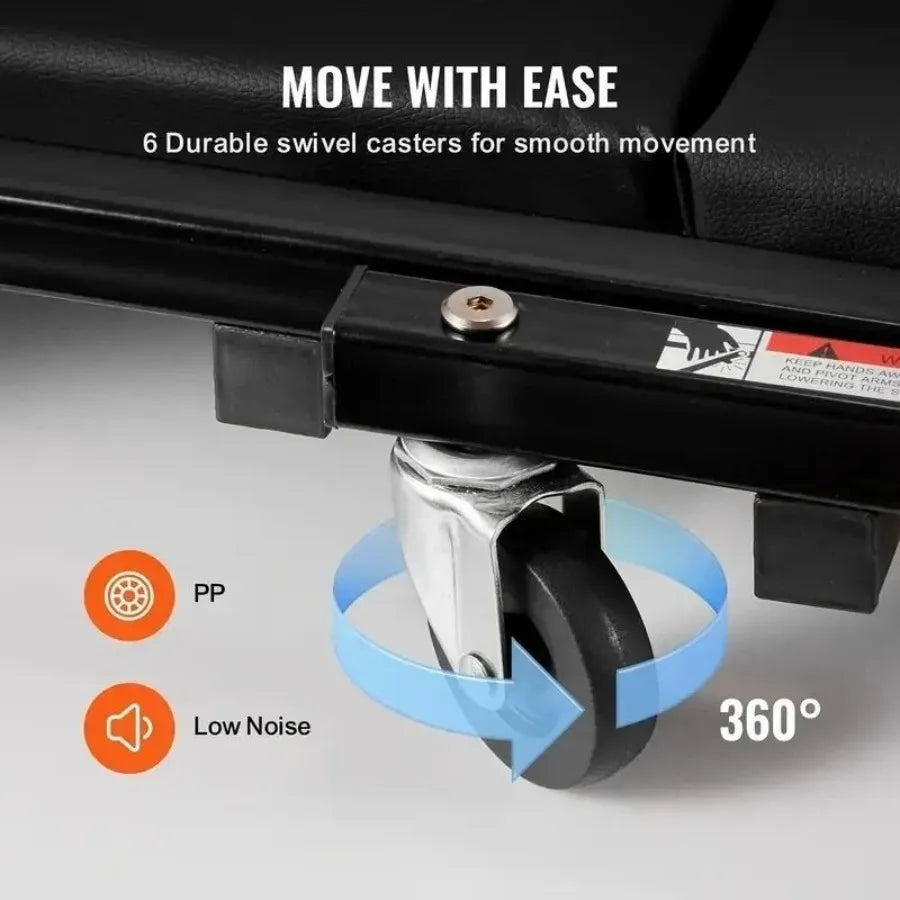 36 Inch 3 in 1 Mechanical Creeper with Brake Mode Z Seat 450 lbs Capacity Adjustable Foldable 6 Wheel Garage Rolling Seat Lay D
