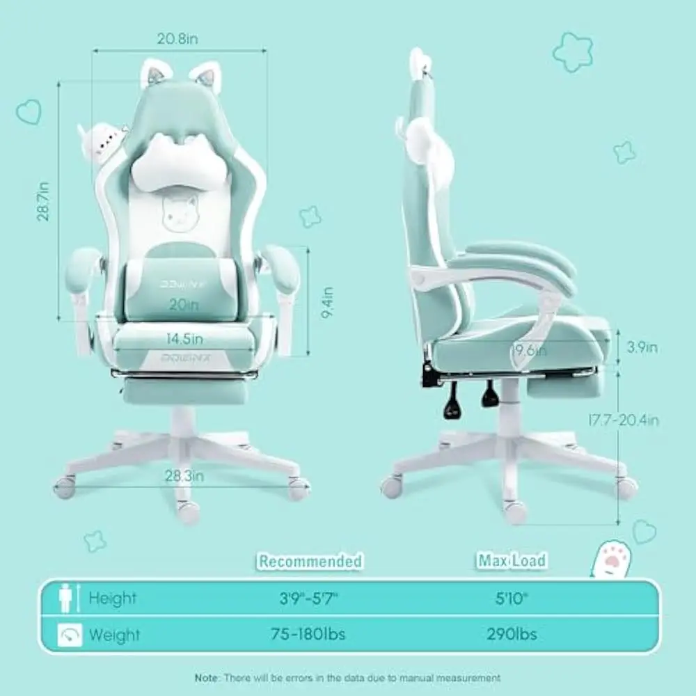 Gaming Chair Cute with Cat Ears and Massage Lumbar Support, Ergonomic Computer Chairs with Footrest and Headrest, Gaming Chair