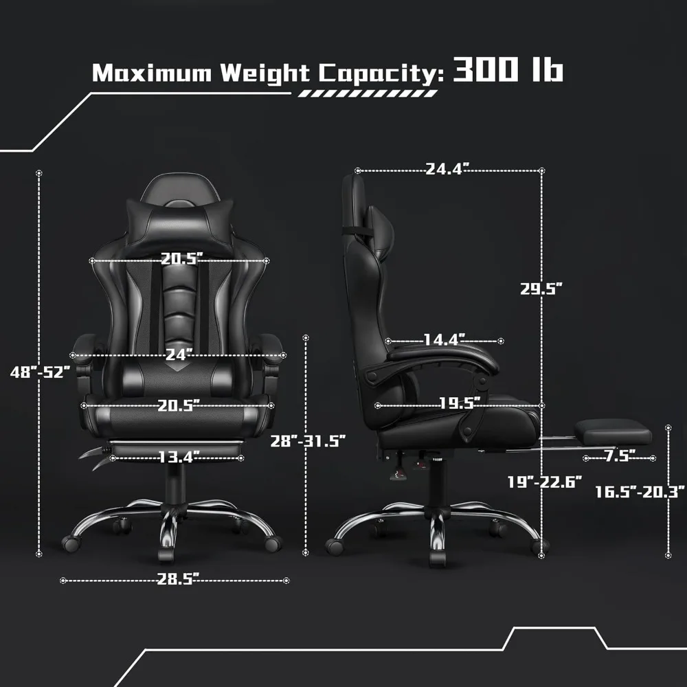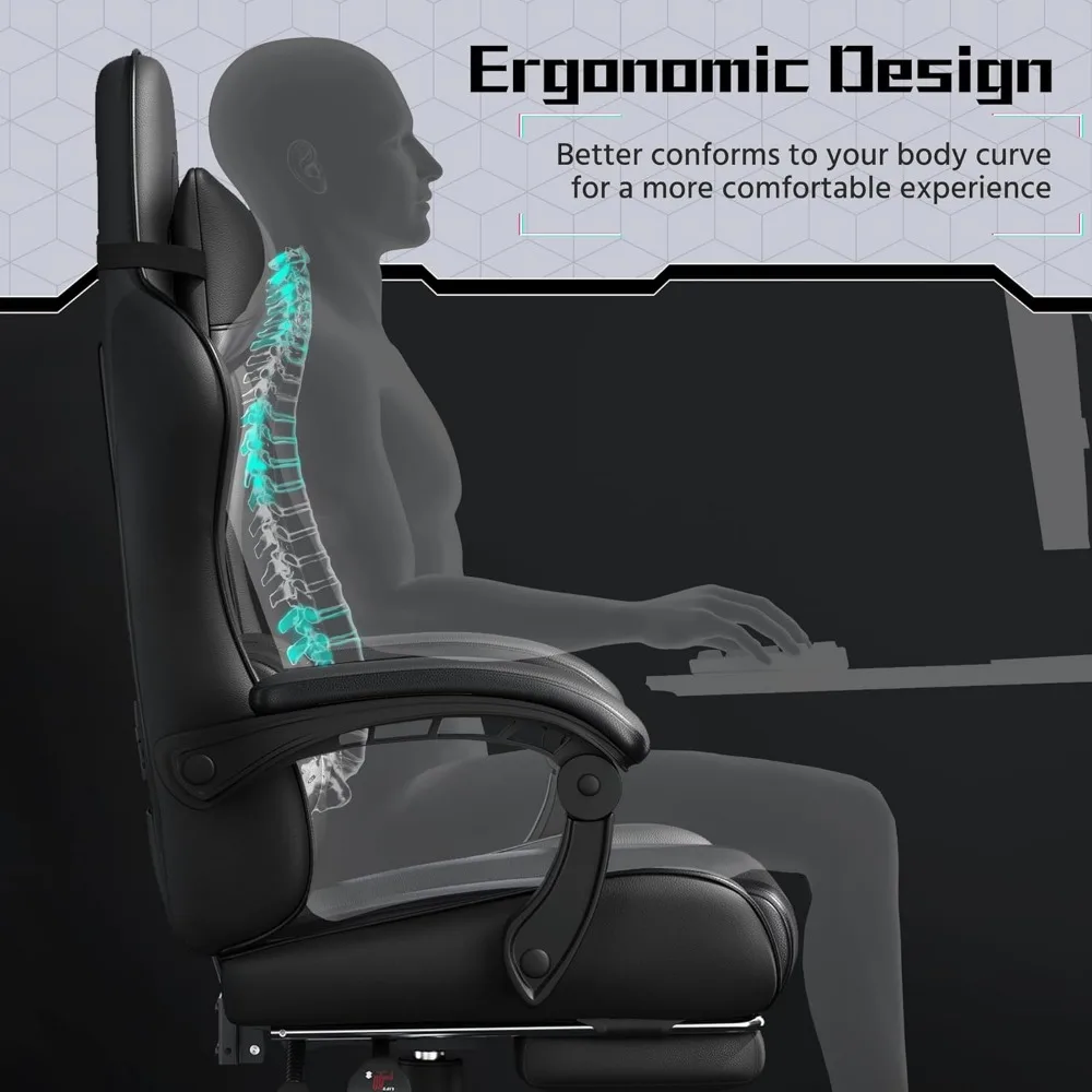 Gaming Chair, Video Game Chair with Massage Lumbar Support and Footrest Height Adjustable Ergonomic Computer Chair with Swivel