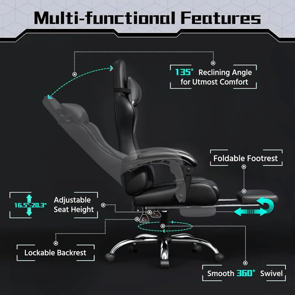 Gaming Chair, Video Game Chair with Massage Lumbar Support and Footrest Height Adjustable Ergonomic Computer Chair with Swivel