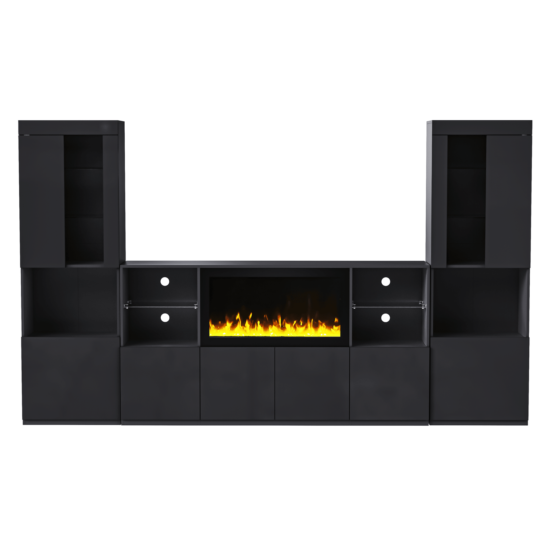 This media console set, which includes a fireplace TV stand and two tall cabinets, offers ample storage space for your various items. Additionally, it can serve as a display shelf, bookshelf, buffet sideboard, and more, catering to your diverse needs.