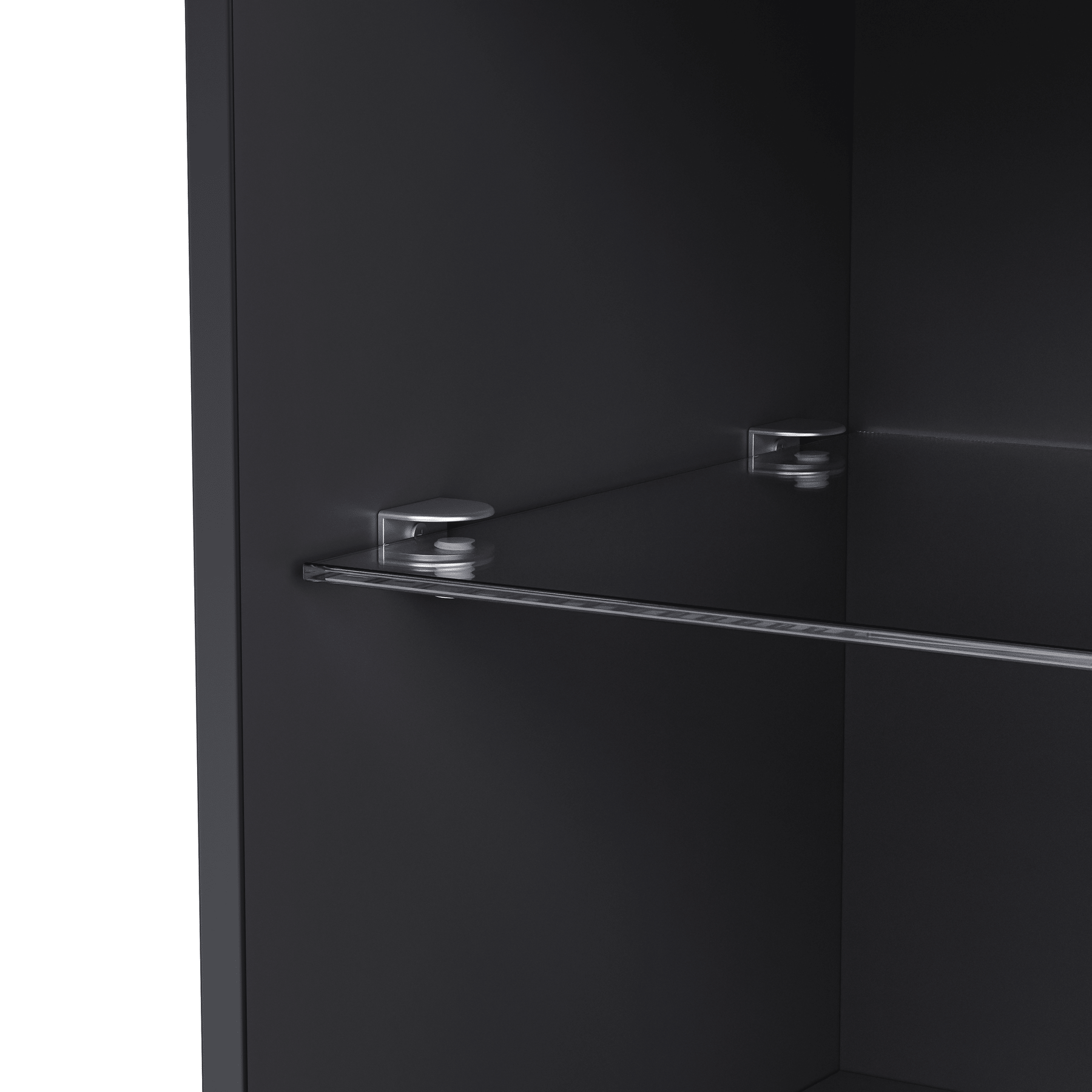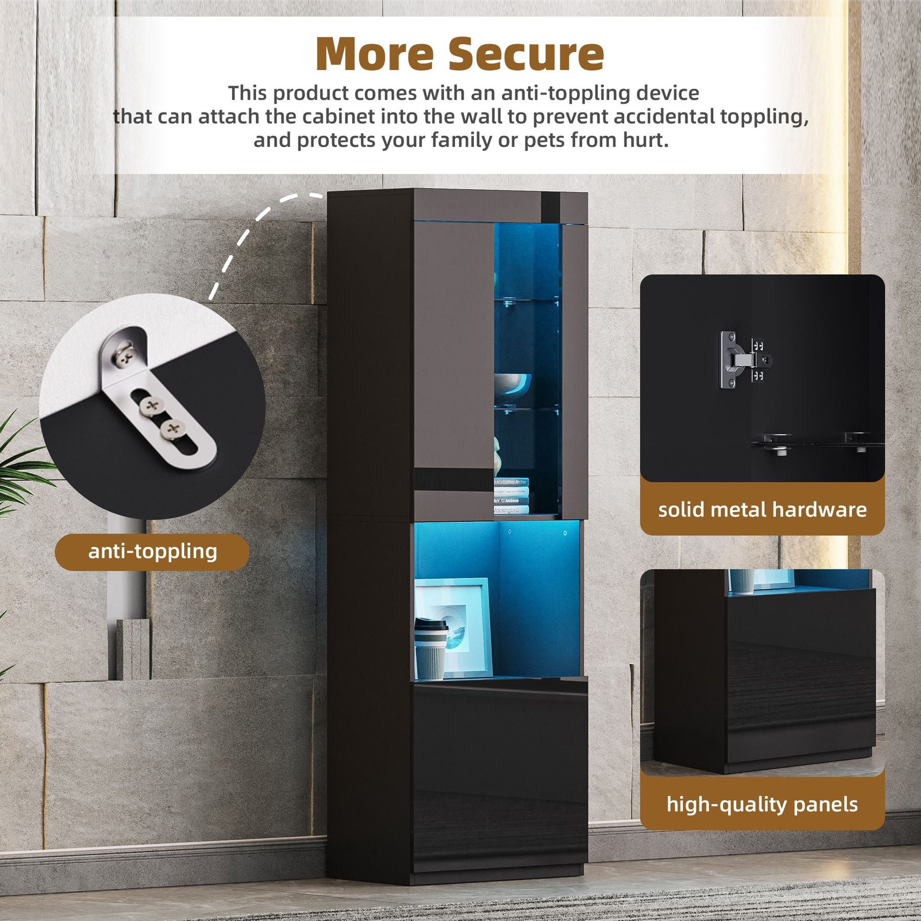 The high gloss surface design of the cabinet doors adds a touch of technology and modernity to your home, while also being waterproof and easy to clean. The acrylic door and tempered glass shelves ensure that your collection is displayed in a clear and accessible manner. It can accommodate TVs up to 75 inches.