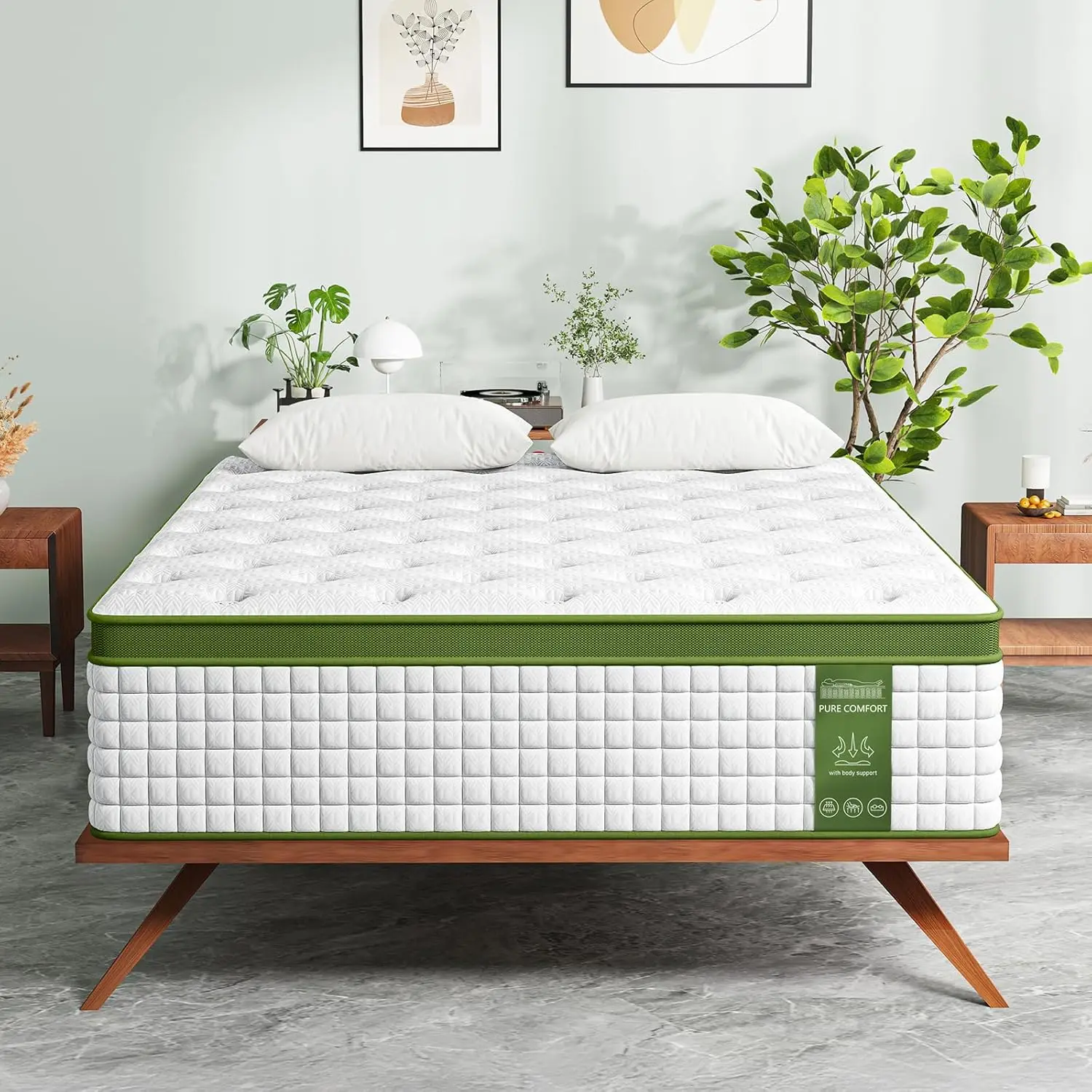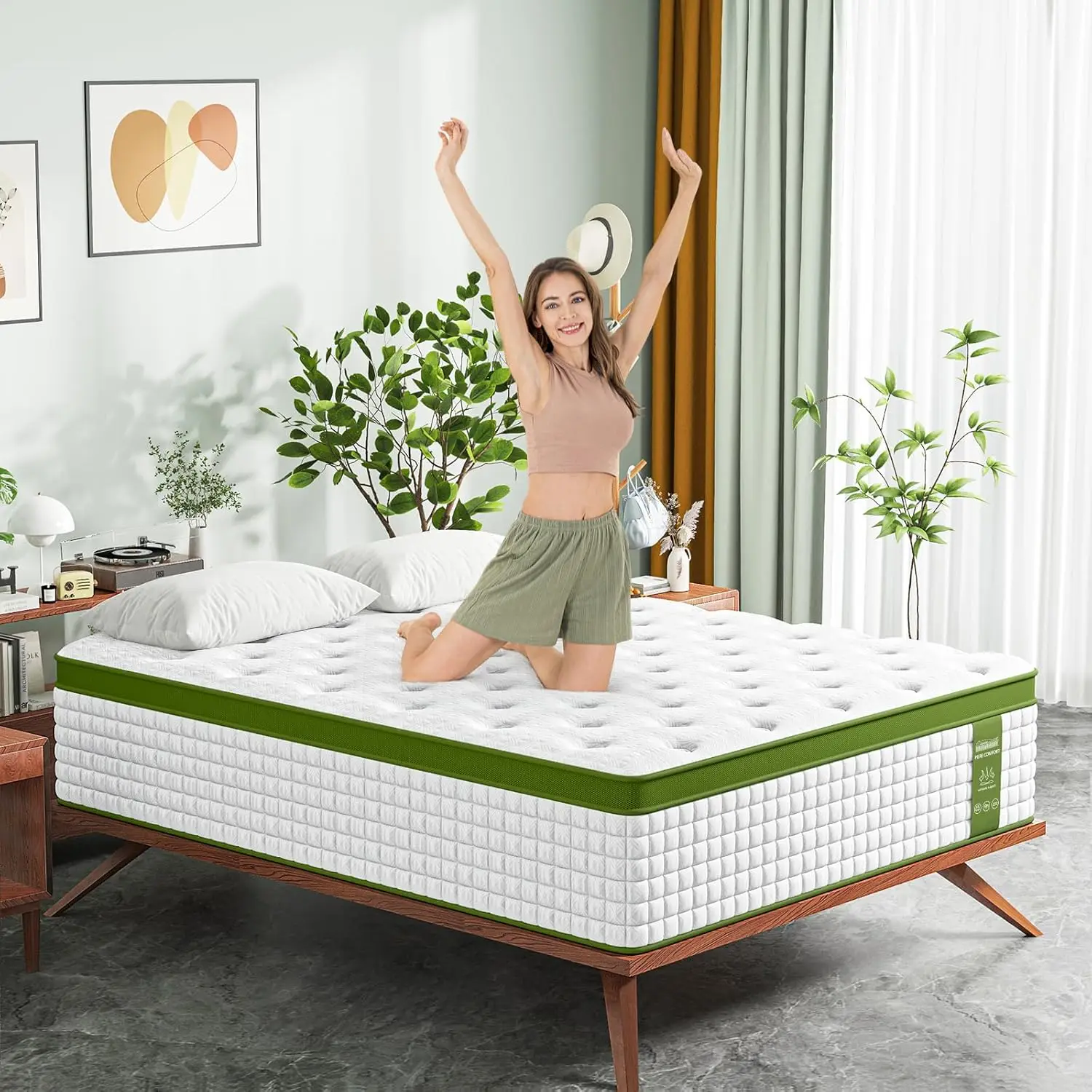 Queen Mattress, 14 Inch Hybrid Mattress Queen Size in a Box with Gel Memory Foam and Pocket Springs