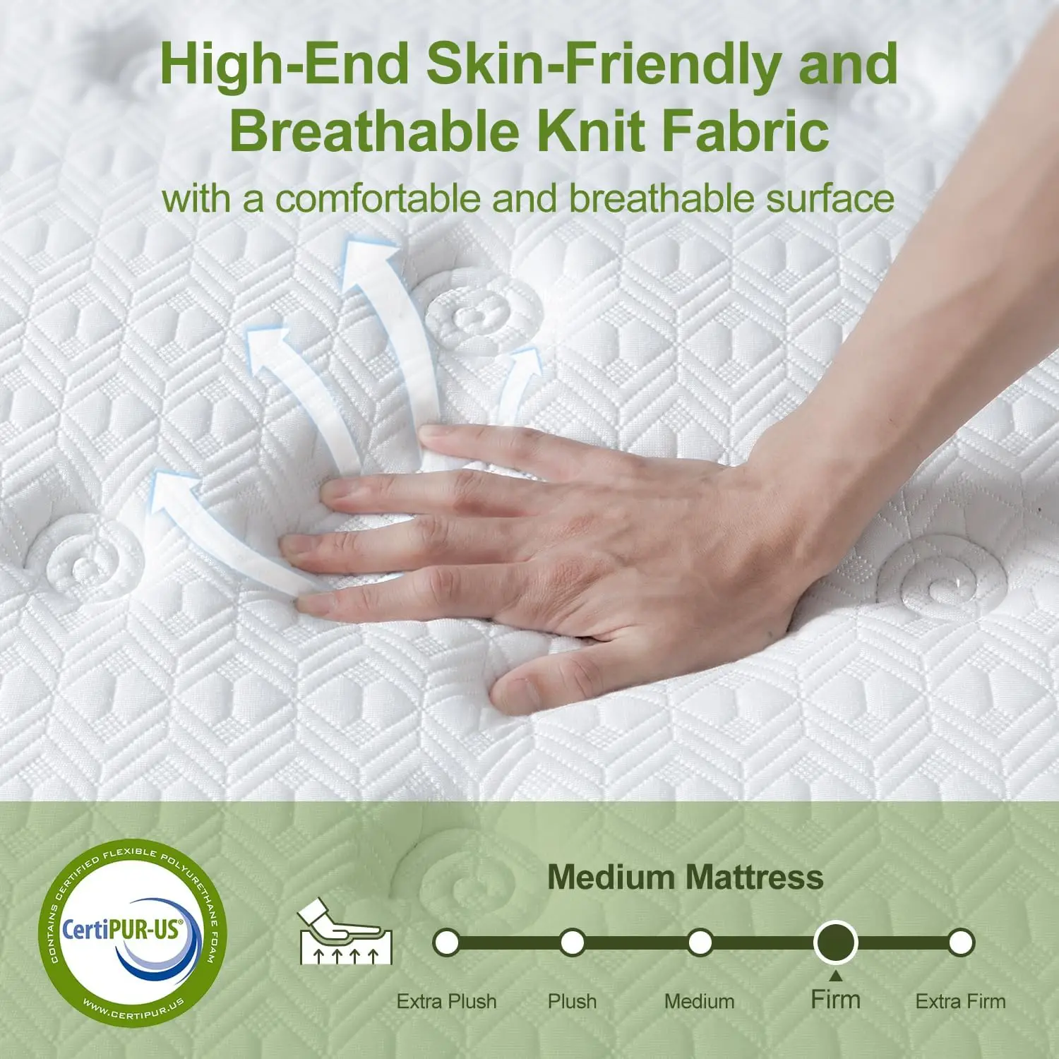 - Breathable & Skin-Friendly Fabric -14 inch Queen hybrid mattresses has a high-end, skin-friendly and breathable knit fabric with a comfortable and breathable surface, provide good air circulation. Our hybrid mattress is certified by CertiPUR US and Oeko-Tex Standard 100, no harmful substances, is fiberglass free, so our memory foam mattress is safe for all people, including pregnant and baby.