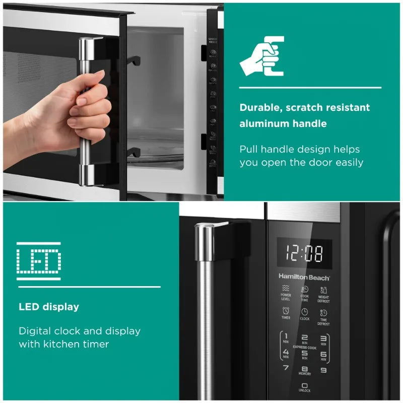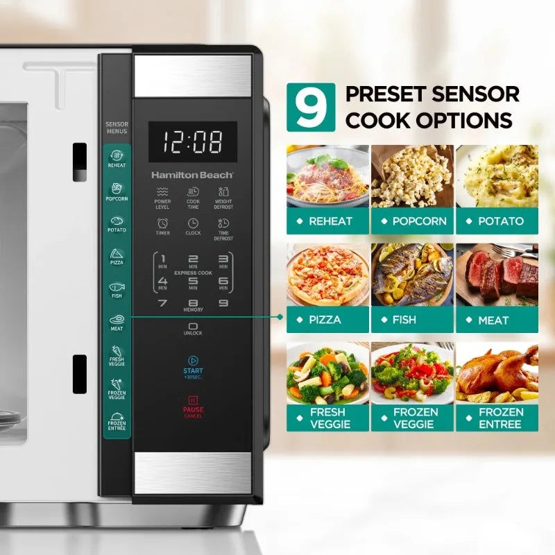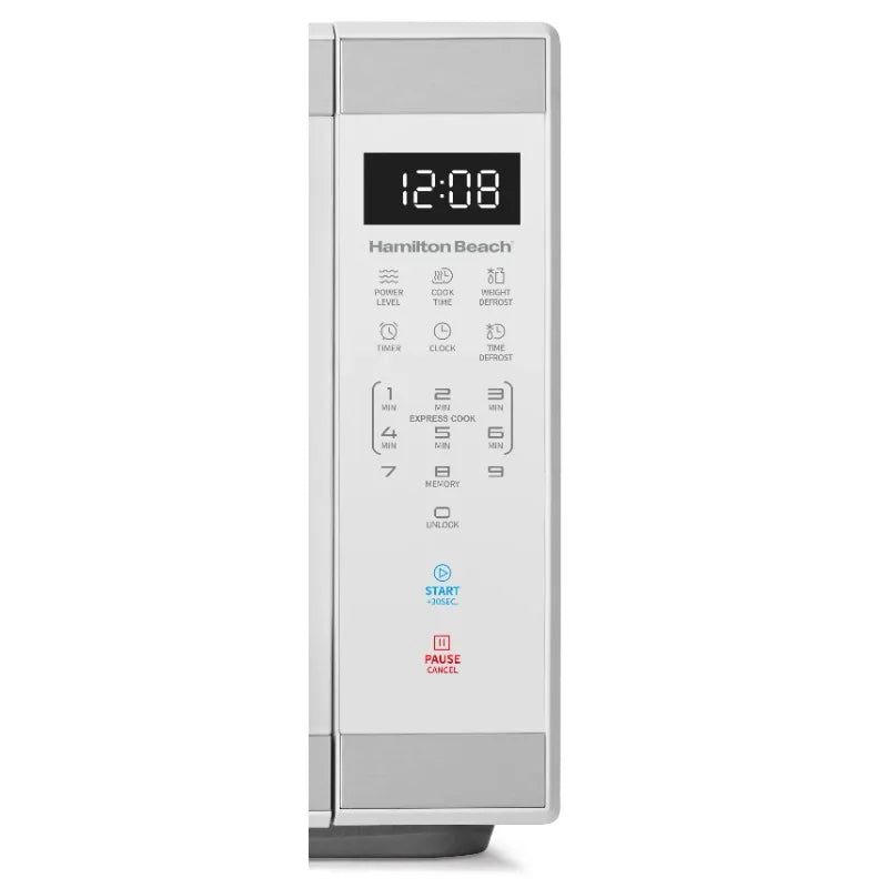 Hamilton Beach 1.1 Cu ft Countertop Microwave Oven, White and Stainless Steel