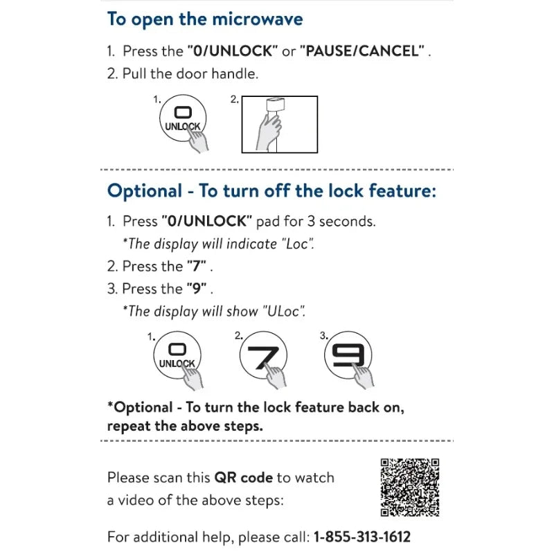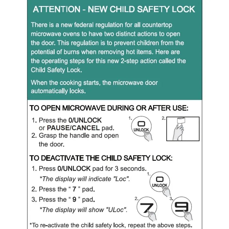 • 6 Quick-set menu buttons: Popcorn, potato, pizza, frozen vegetable, beverage, and dinner plate for easy cooking options