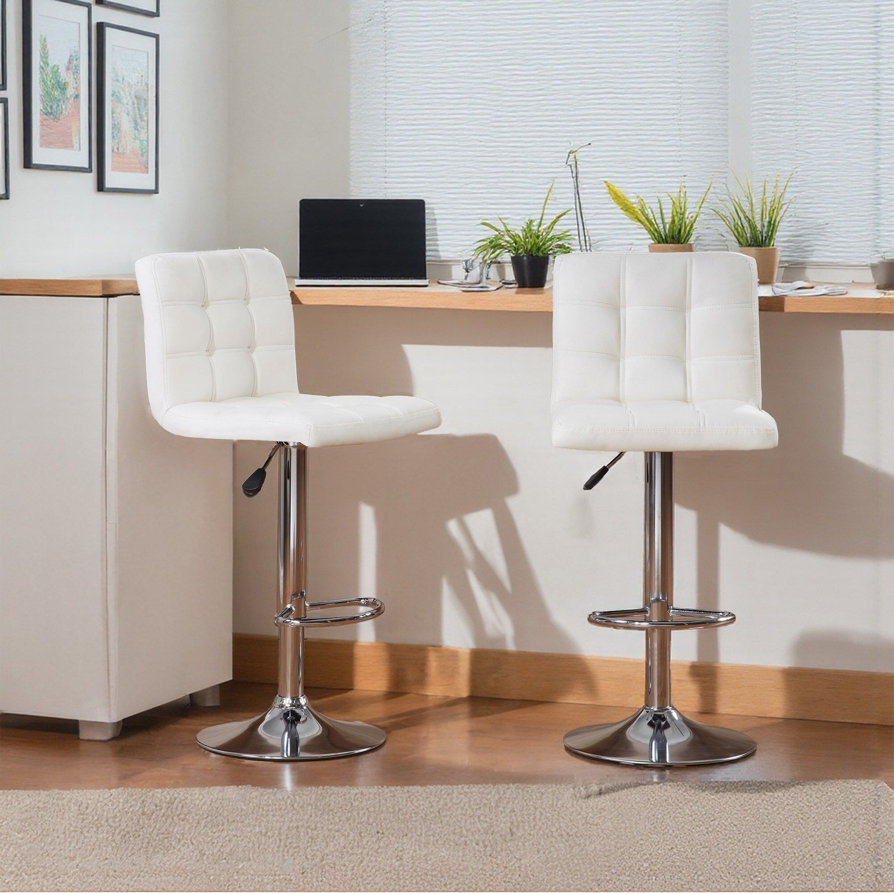 Café Blanc Square Cushion Counter Stools - Modern White Bar Chairs with Back Support (Set of 2)
