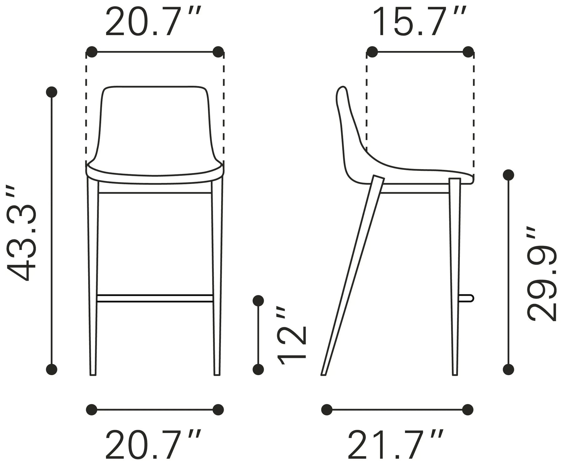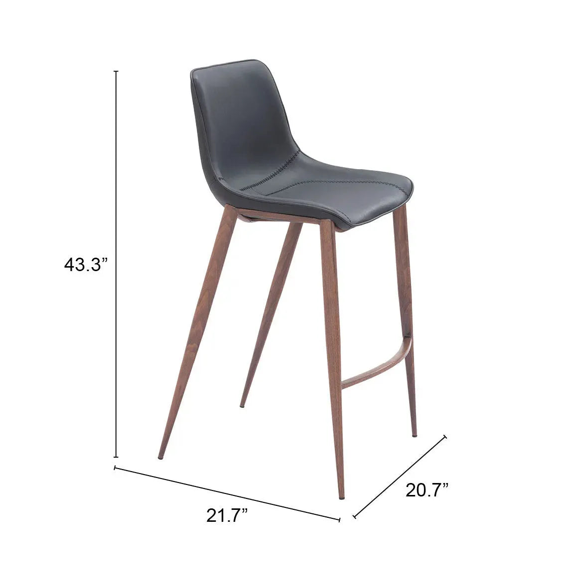 Magnus Barstool Black & WalnutAesthetic sophistication meets functional design with Magnus. With a lovely Black & Walnut color, this set of two barstools will add both warmth and style to your home in a modern way. The upholstery is made from 100% polyurethane, giving it a smooth, leather-like texture that is both luxurious and easy to keep clean, ensuring you stay comfortable during long sitting sessions. Newson maintains his signature curvaceous design on these barstools, which are made with a solid plywood and steel frame for added stability and durability, making them the perfect addition to a kitchen island, a home bar, or a high-top dining table. Modern and minimal, the Barstool Black & Walnut fits nicely into modern decor styles while providing style and function.