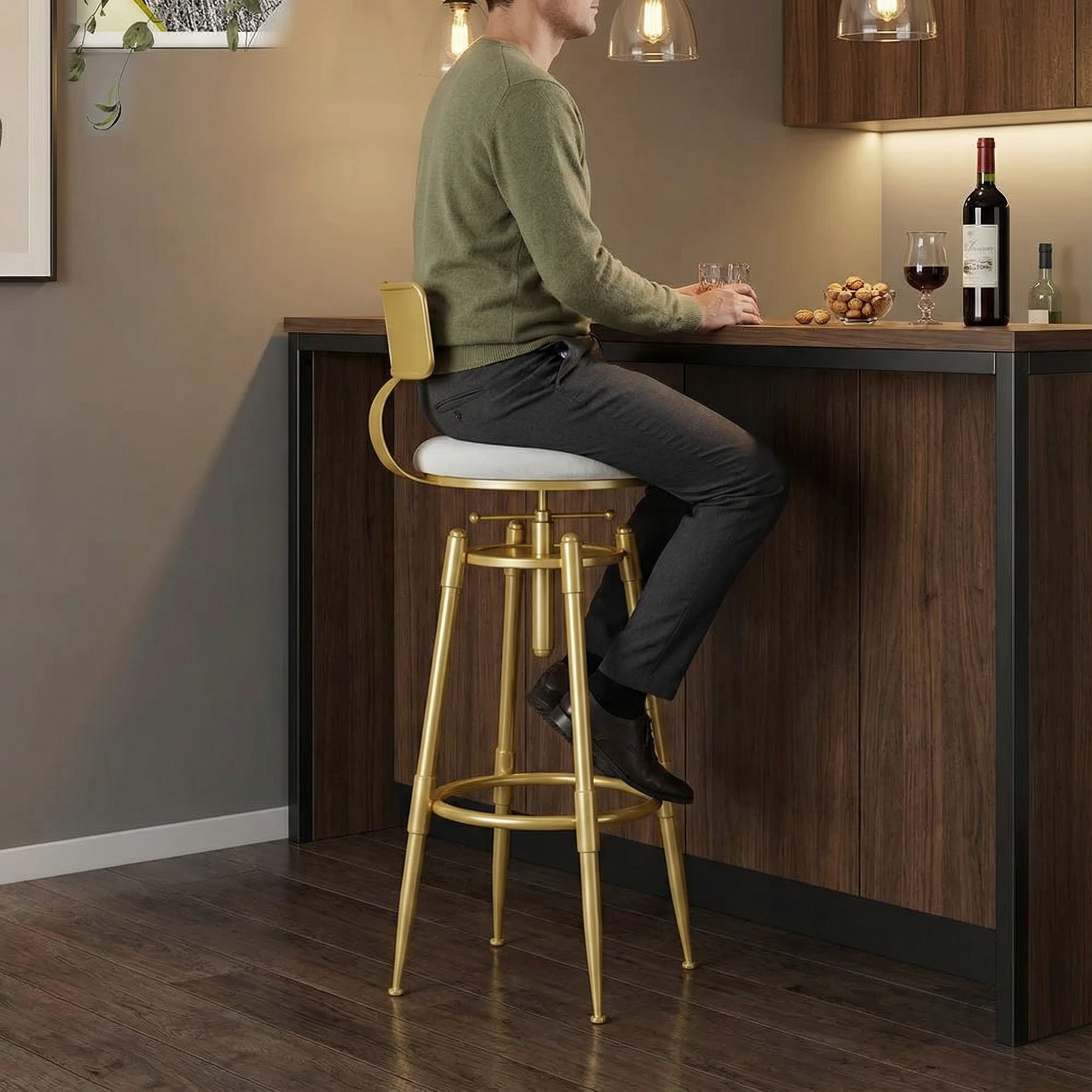 Putting these bar stools to use is effortless. The height adjustment lever lets you find the perfect seating level in seconds, and the smooth swivel makes turning around a breeze. When it comes to upkeep, the velvet upholstery can be gently wiped clean with a soft cloth to remove light dust or spills. No complicated maintenance—just quick and simple care to keep them looking great for years.