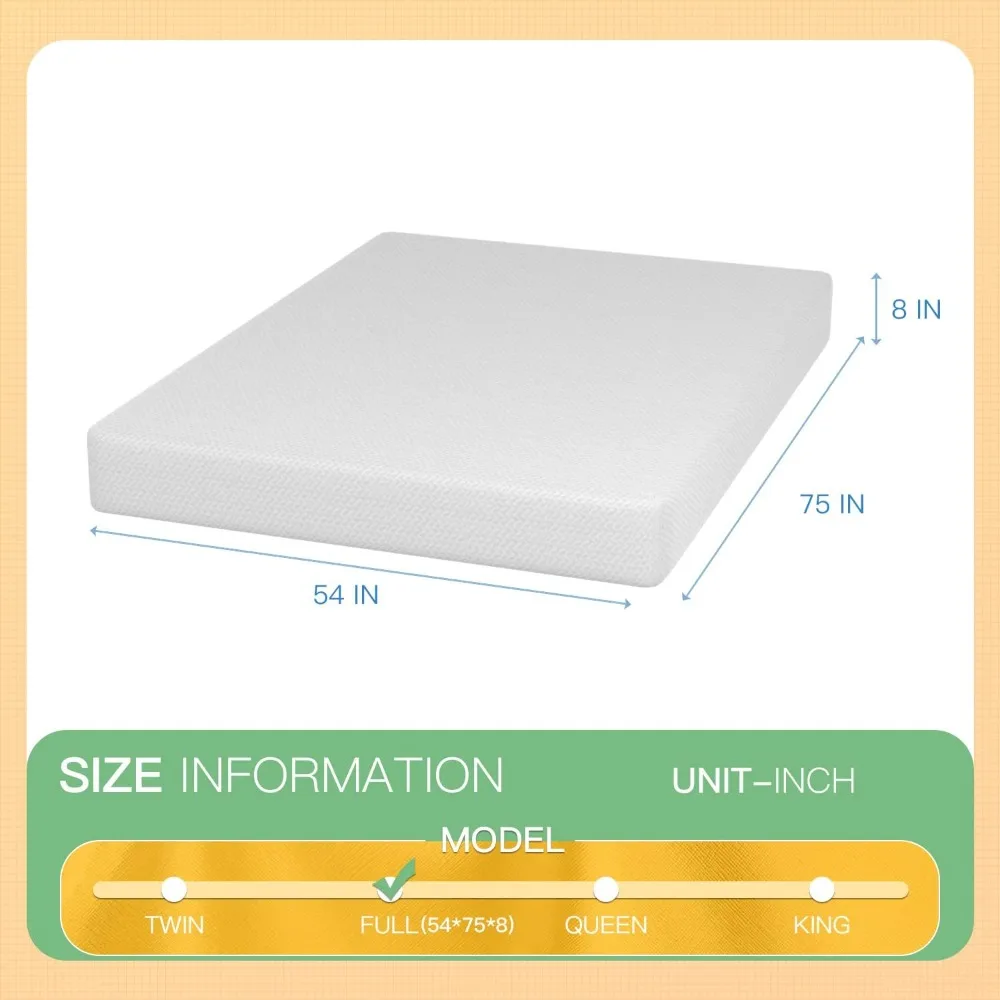 8 inch Memory Foam Mattress Cooling Gel Green Tea Infused Mattress,Fiberglass Free,CertiPUR-US Certified,Cooler Sleep Supportiv