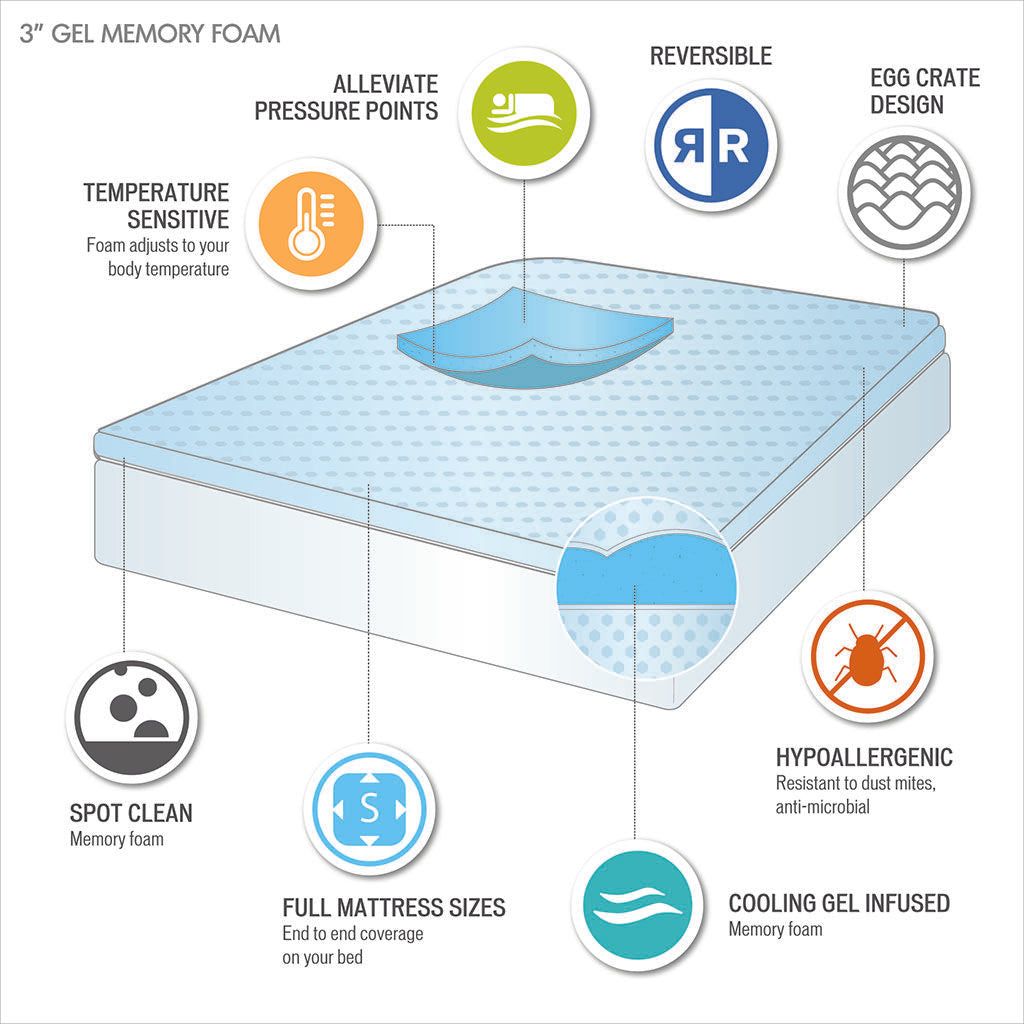 3" 100% Gel Memory Foam adds an instant layer of comfort to your mattress