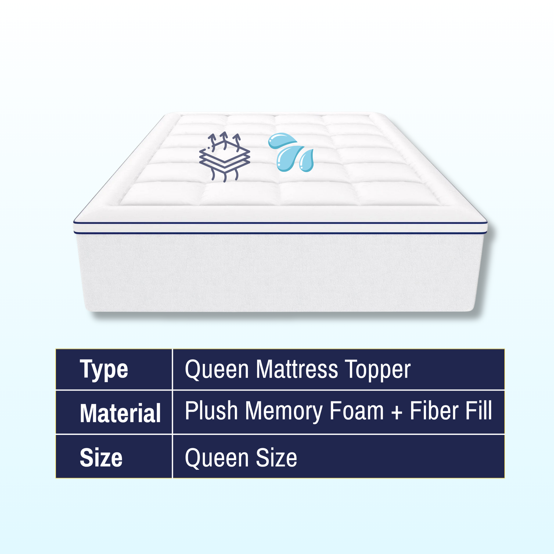 Upgrade your sleep experience with the **Premium Dual-Layer Memory Foam Sleep System**—a 4-inch mattress topper that brings new life to any mattress. Featuring premium memory foam paired with fiber fill technology, it delivers a combination of comfort and support that’s hard to beat. The high-density foam air pockets are engineered for breathability, while the substantial thickness provides reliable support to refresh older mattresses, soften those that are too firm, or simply extend the life of your current bed. For those concerned about overheating, this topper incorporates innovative cooling gel-infused materials designed to manage heat and wick away moisture. It’s particularly well-suited for hot sleepers or anyone looking for a cooler, more comfortable rest, even during warmer months. The ergonomic design fits the body’s contours, easing pressure points and supporting natural spinal alignment, which helps promote truly restorative sleep. The slow-rebound memory foam adapts to your unique shape, delivering deep relaxation and consistent comfort night after night.