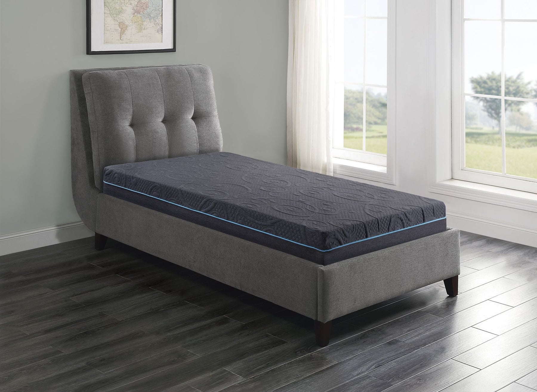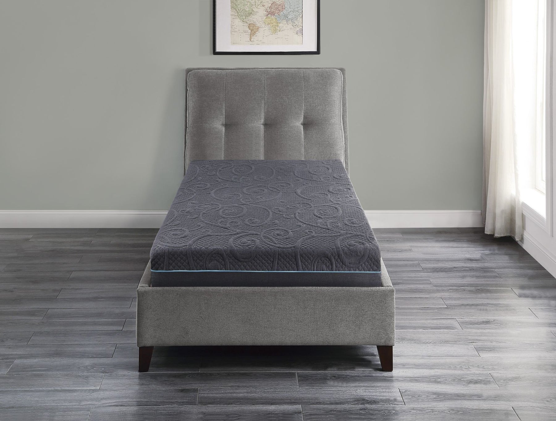 8" Twin Size Bed Mattress Gel-Infused Memory Foam Hybrid Mattress, Dark Gray, Mattress in a Box, Firm Comfort Mattress