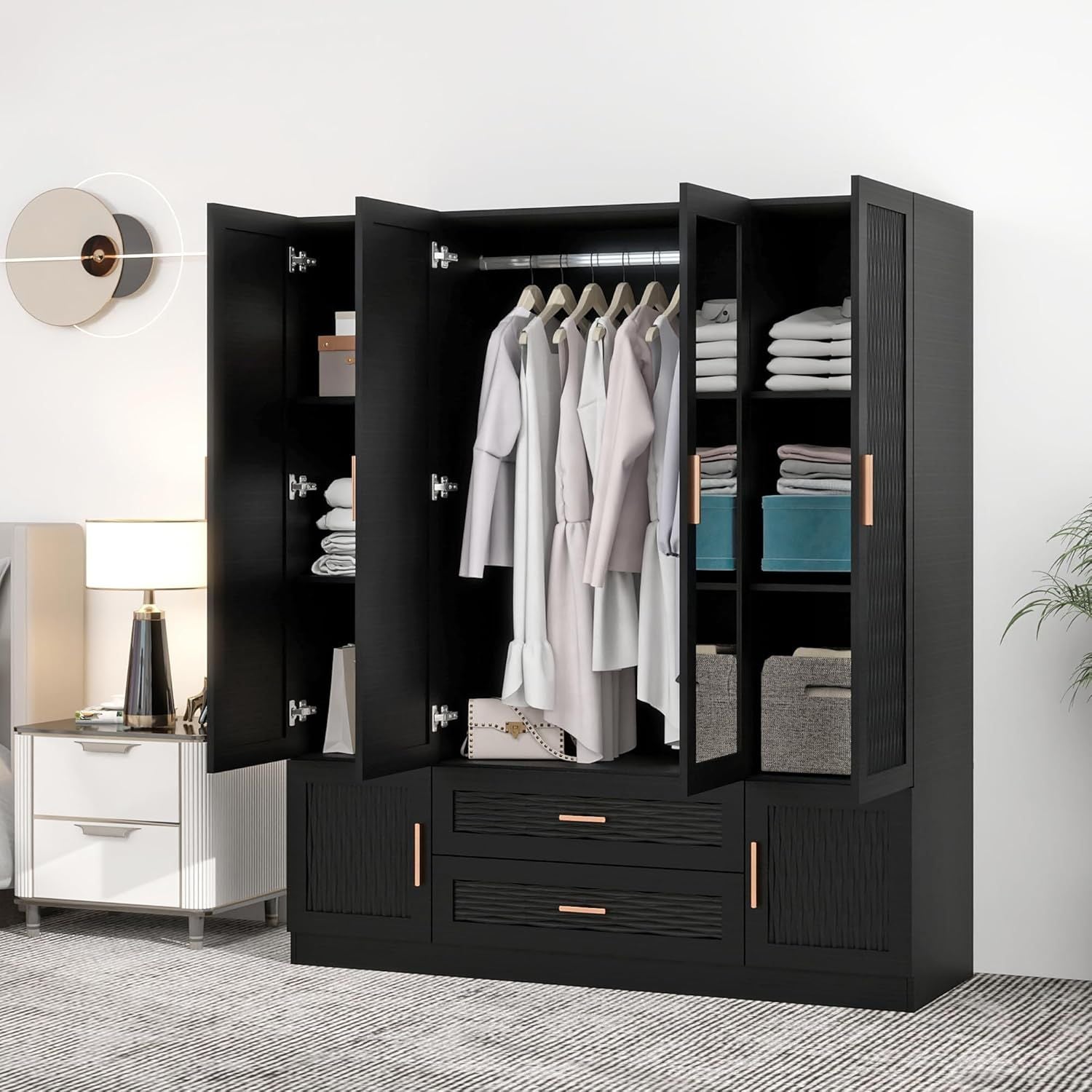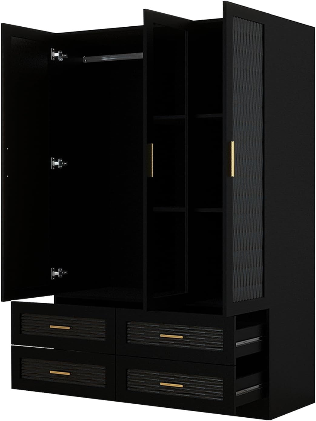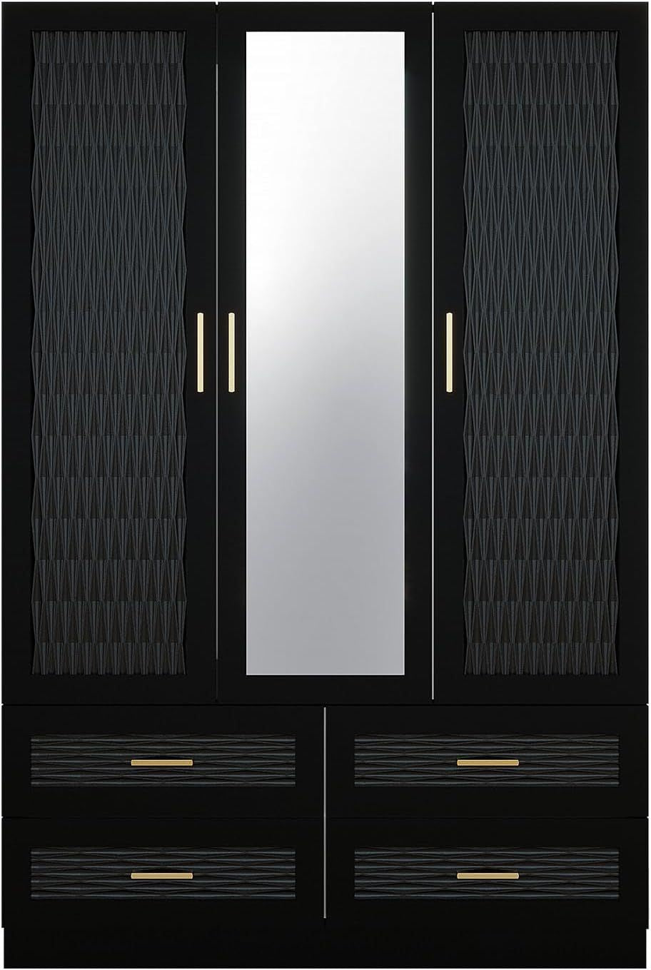 Buy the Modern Black Wardrobe – 3 Doors, Hanging Rods & Storage Drawers for your master bedroom, guest suite, or apartment. The Modern Black Wardrobe – 3 Doors, Hanging Rods & Storage Drawers provides an elegant solution for modern storage needs with its streamlined profile, spacious interior, and versatile features. Its striking matte black finish complements contemporary décor while offering generous space for clothing, shoes, accessories, and daily essentials. Three doors reveal multiple shelves and sturdy hanging rods, allowing you to arrange items exactly to your liking. Smooth-glide drawers keep the room tidy and maximize every inch of available storage.
