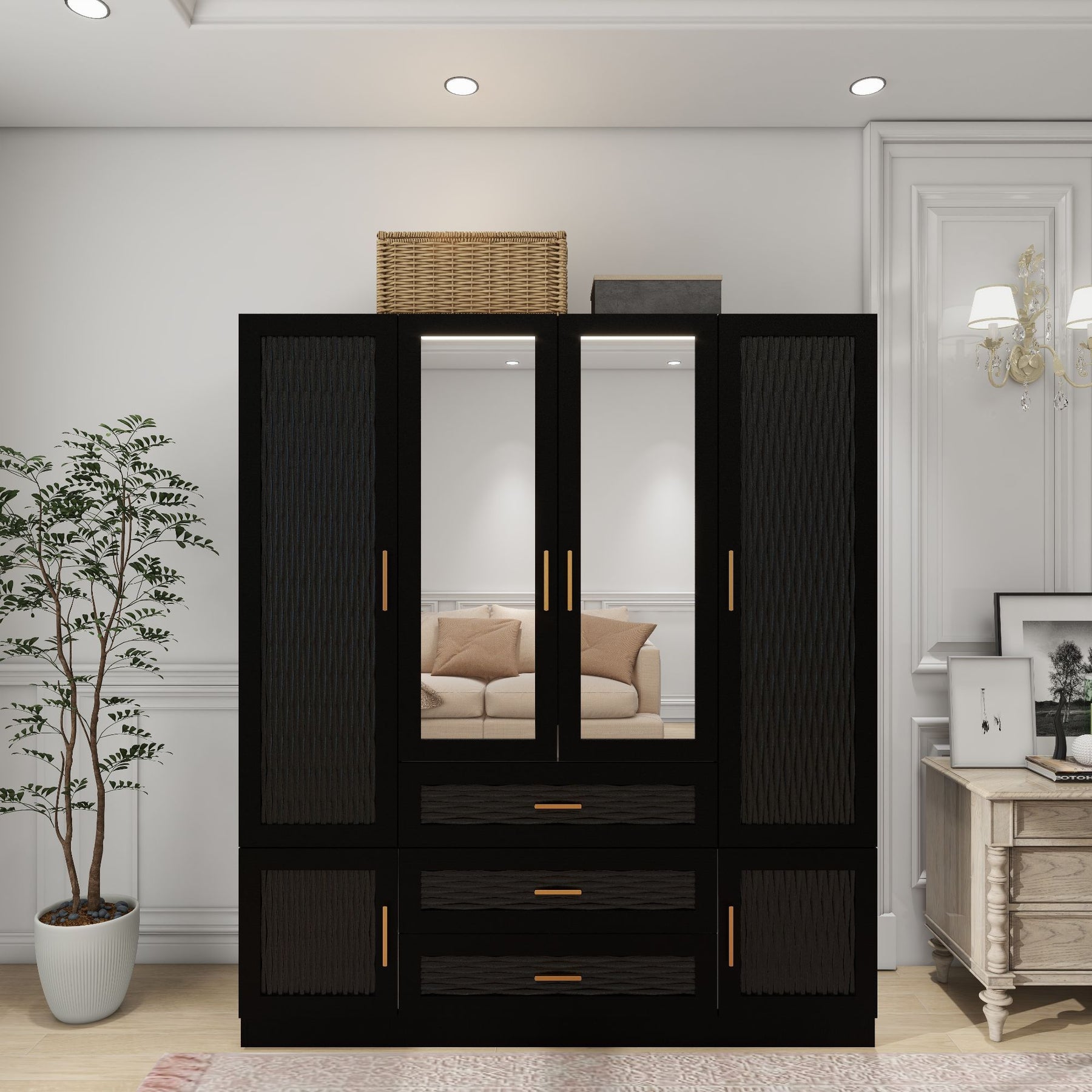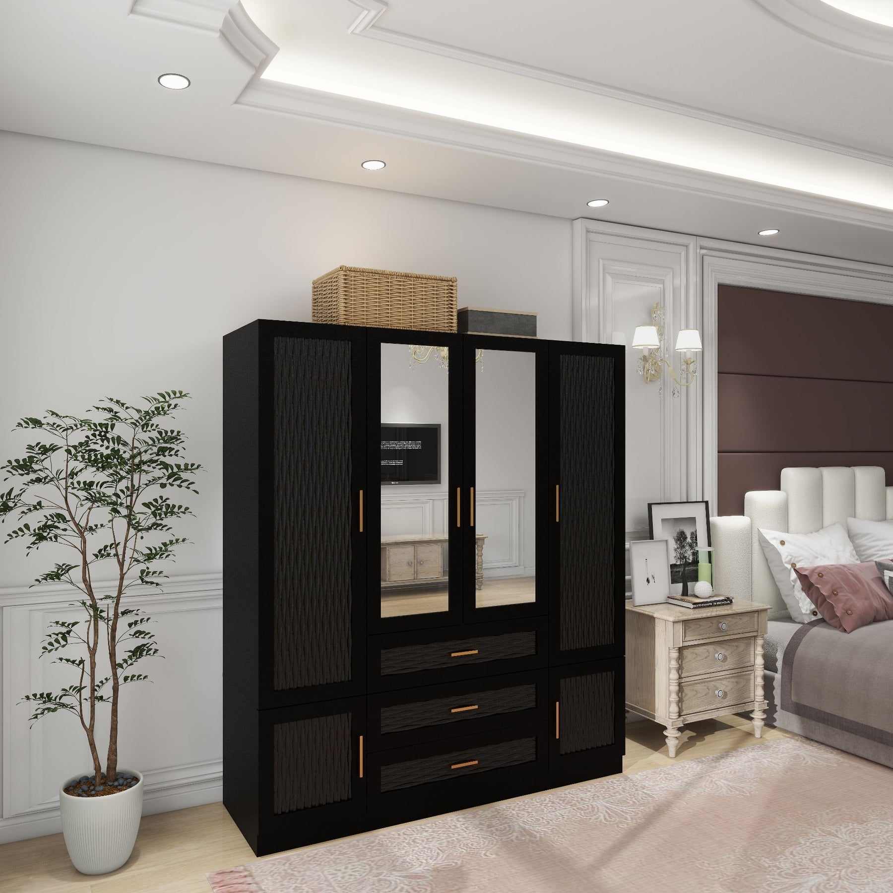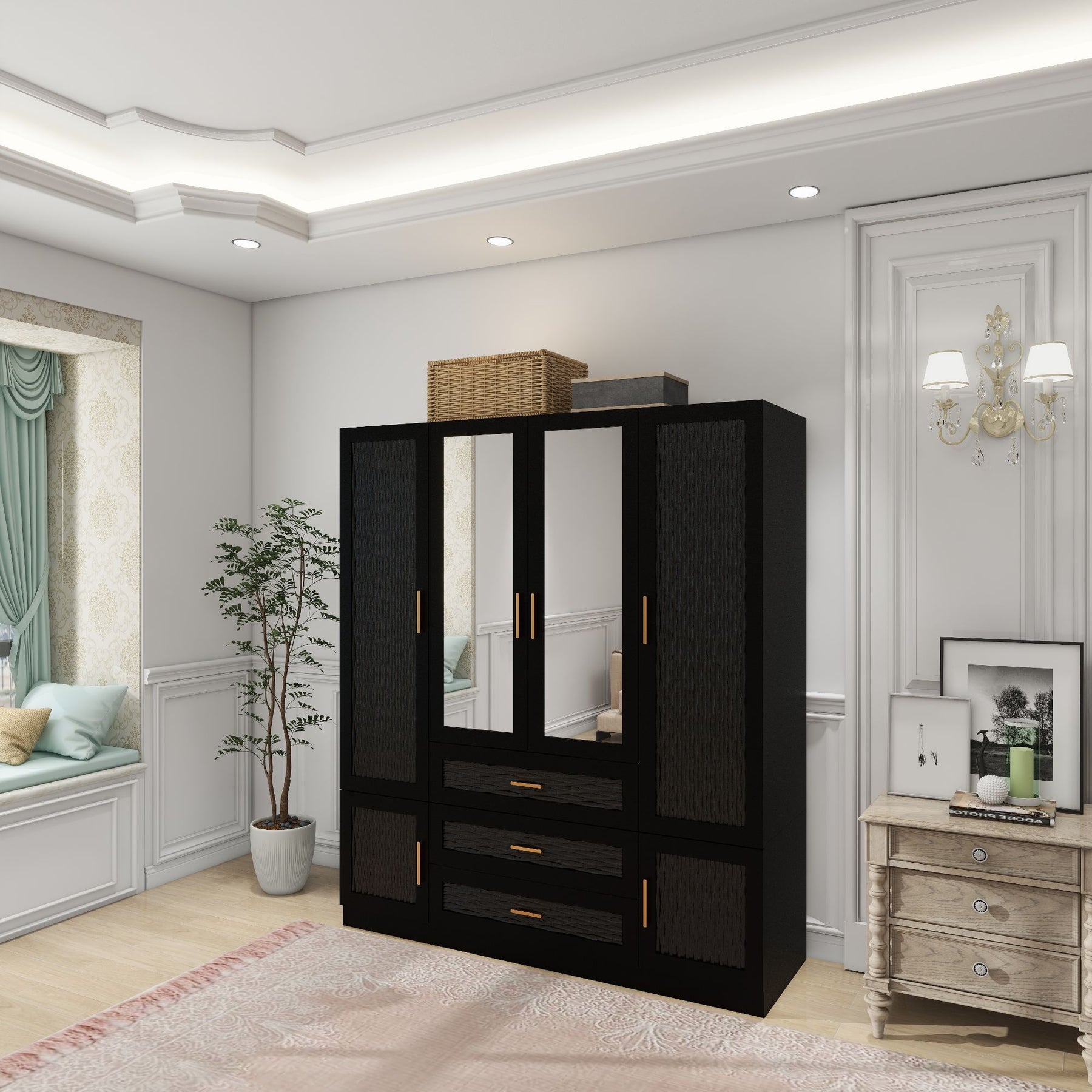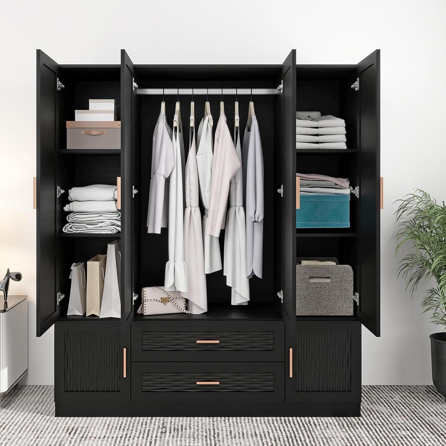 Buy the Modern Black Wardrobe – 3 Doors, Hanging Rods & Storage Drawers for your master bedroom, guest suite, or apartment. The Modern Black Wardrobe – 3 Doors, Hanging Rods & Storage Drawers provides an elegant solution for modern storage needs with its streamlined profile, spacious interior, and versatile features. Its striking matte black finish complements contemporary décor while offering generous space for clothing, shoes, accessories, and daily essentials. Three doors reveal multiple shelves and sturdy hanging rods, allowing you to arrange items exactly to your liking. Smooth-glide drawers keep the room tidy and maximize every inch of available storage.