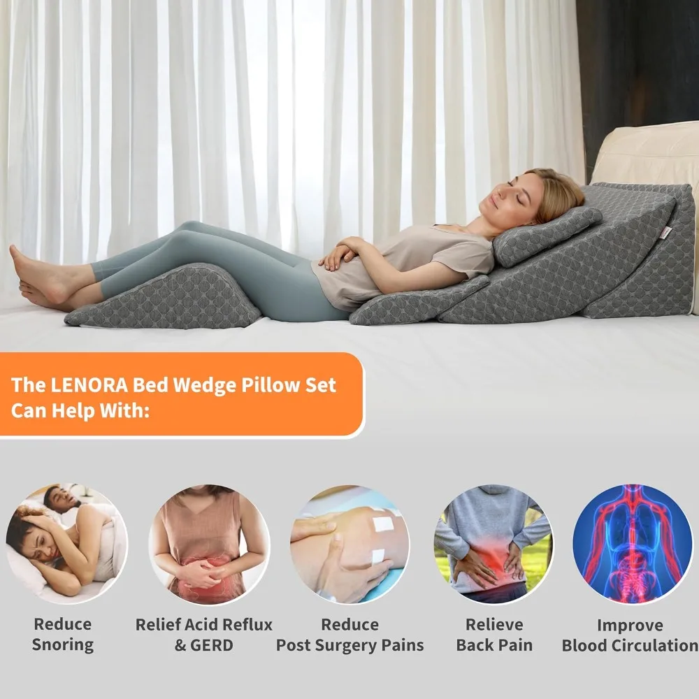 Adjustable Orthopedic Bed Wedge Pillow Set, Post Surgery Recovery, Memory Foam Wedge Pillow for Back, Knee&Leg Pain Relief- Best