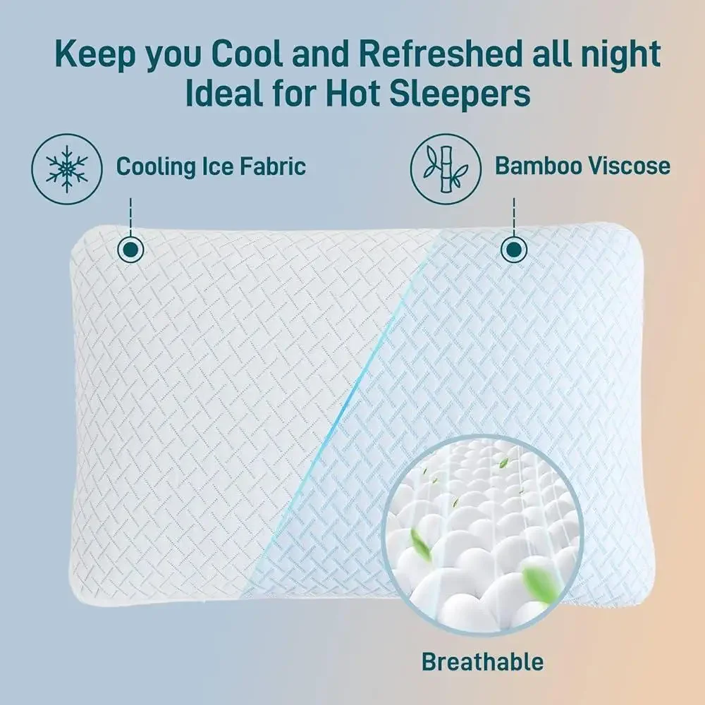 Adjustable Shredded Memory Foam Cooling Pillows Hypoallergenic Soft Plush Sleep Support Back Stomach Side Sleepers Set of 2