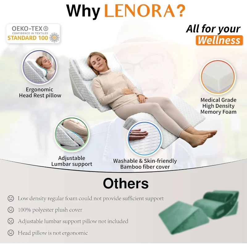 Reading Pillow & Back Support for Sleeping, Memory Foam Wedge for Lower Back, Knee a