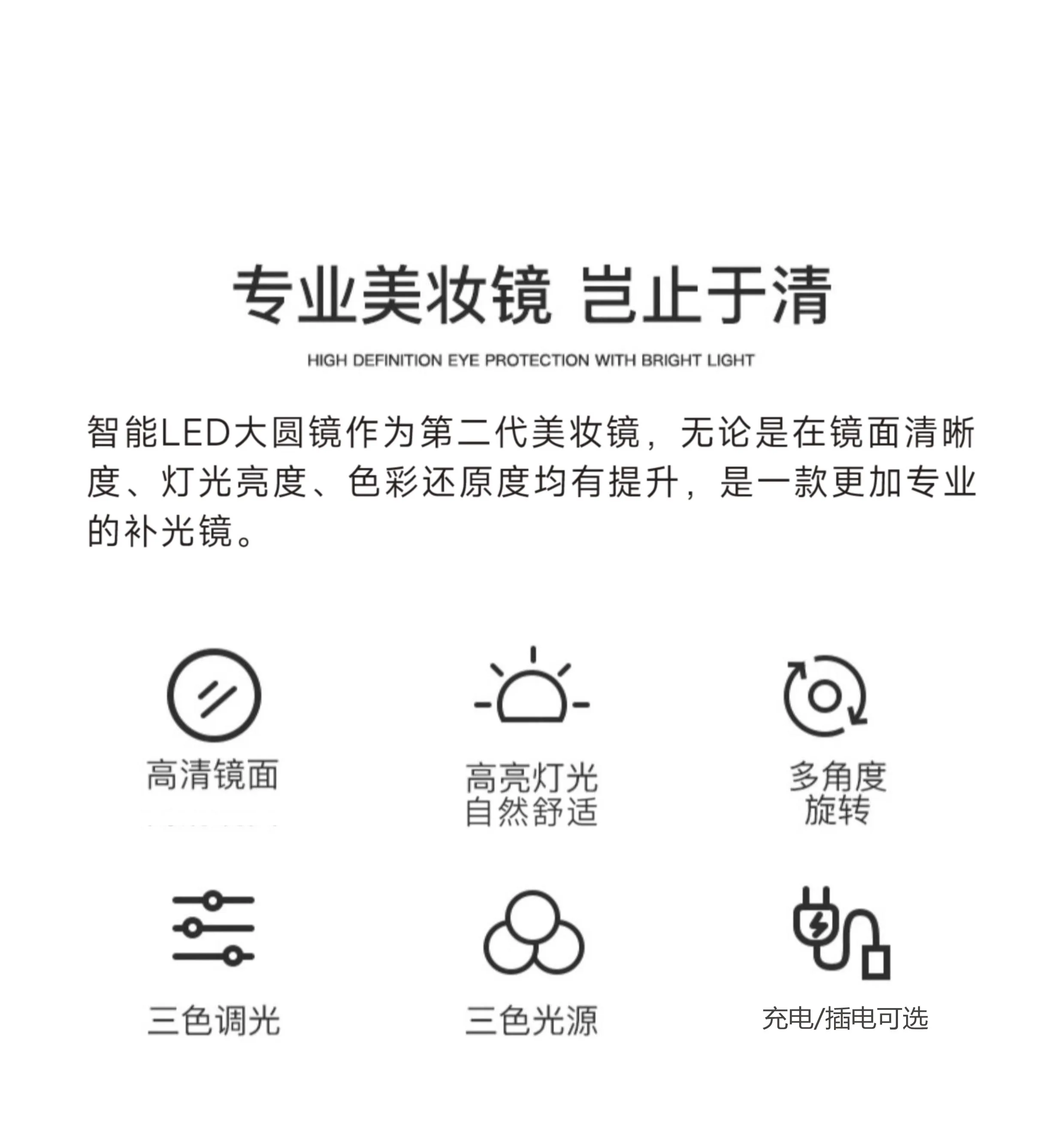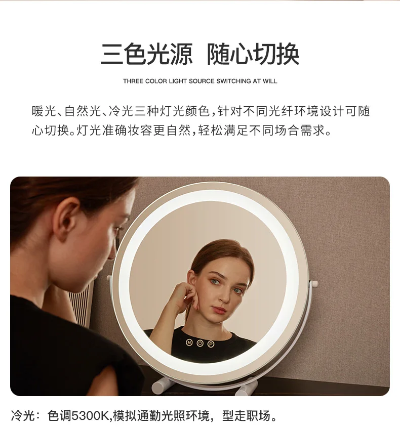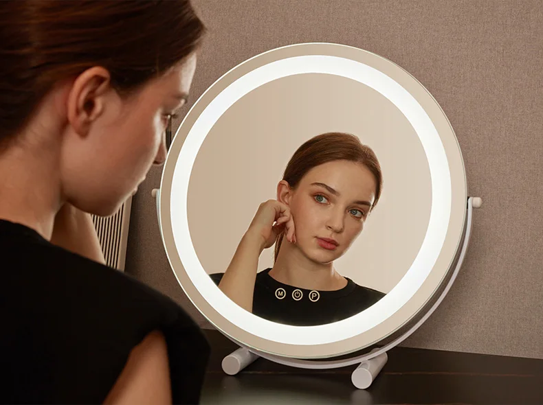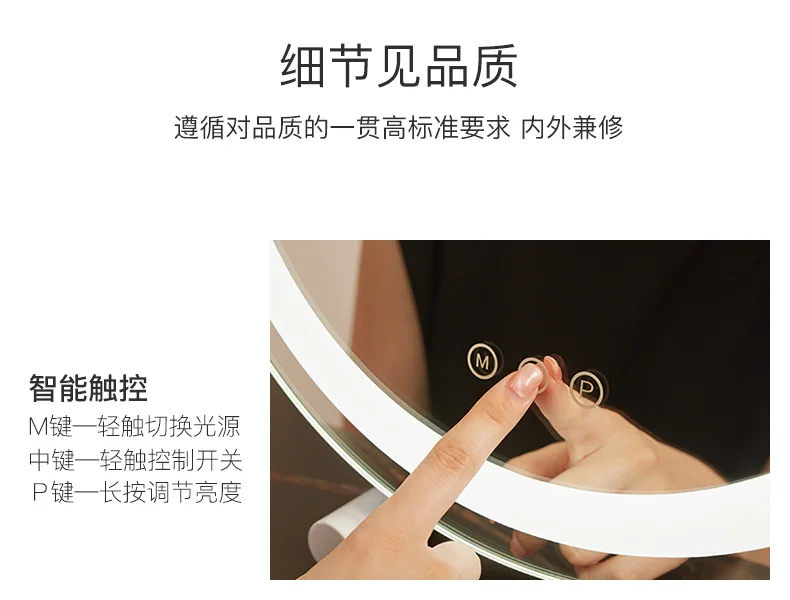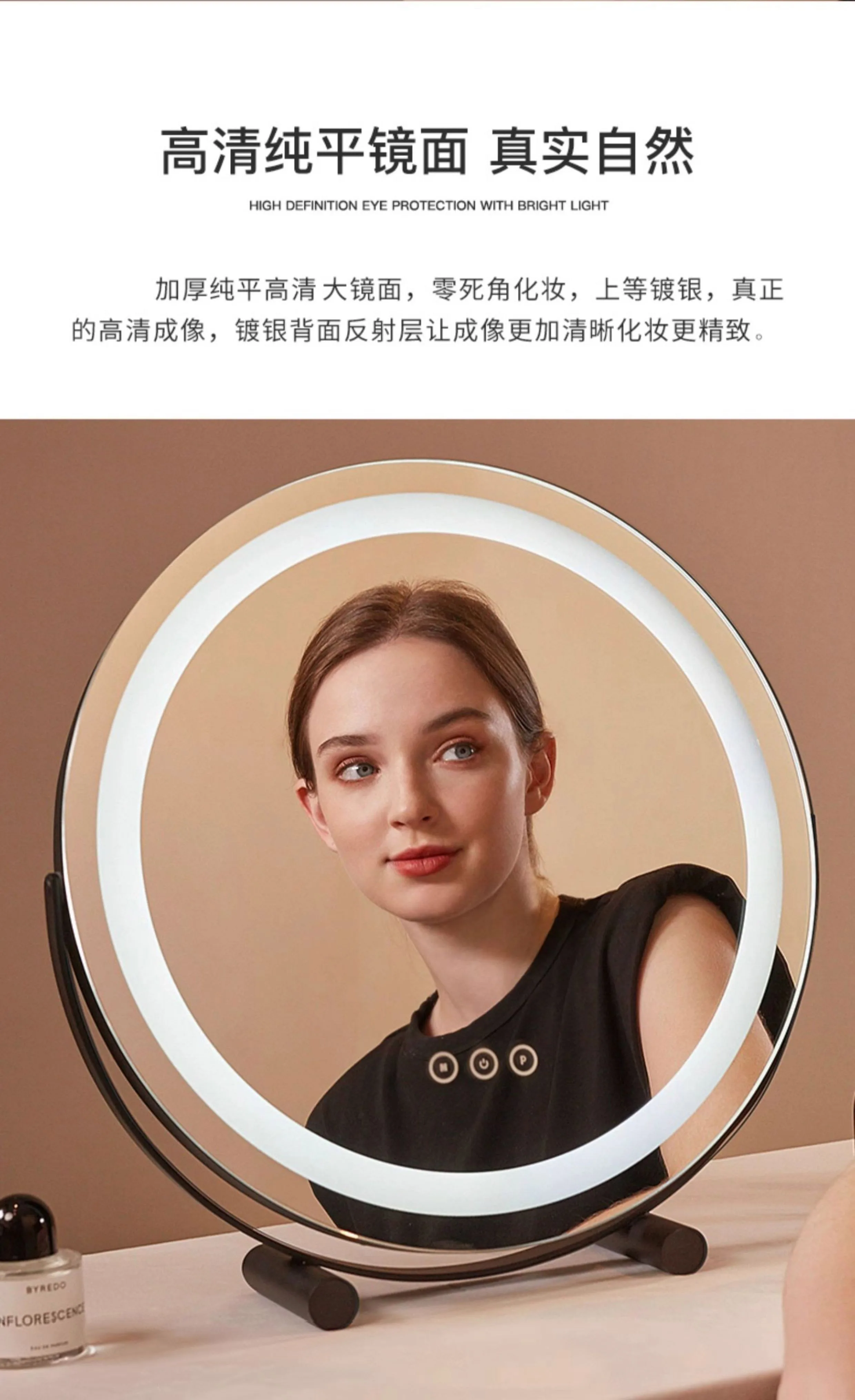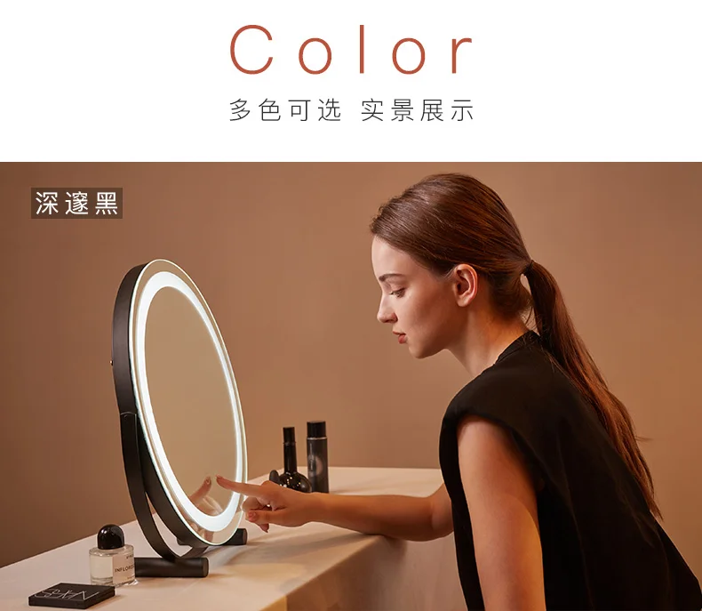Dressing table mirror, makeup mirror, desktop bedroom, household circular makeup mirror, LED makeup table, makeup mirror