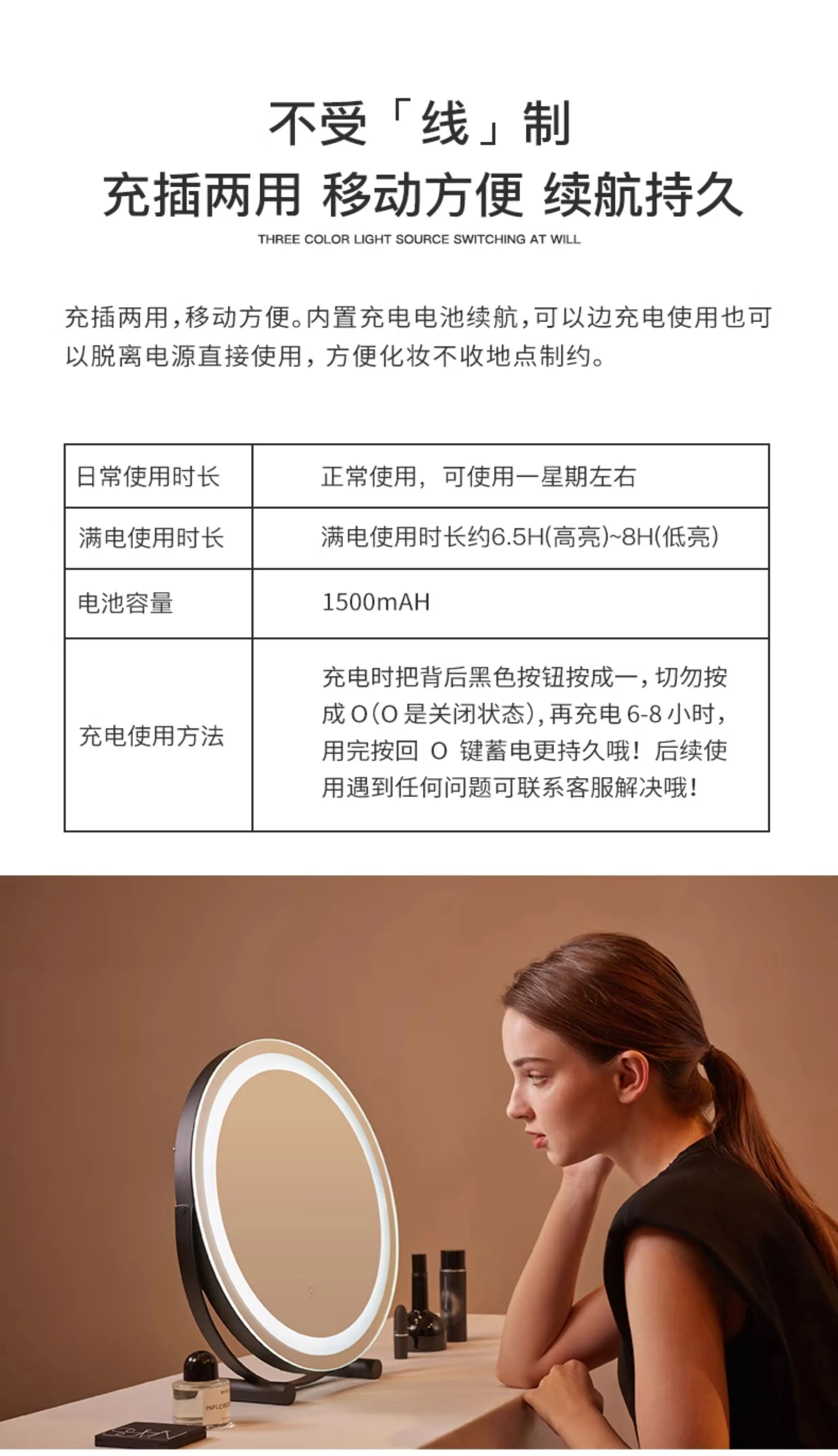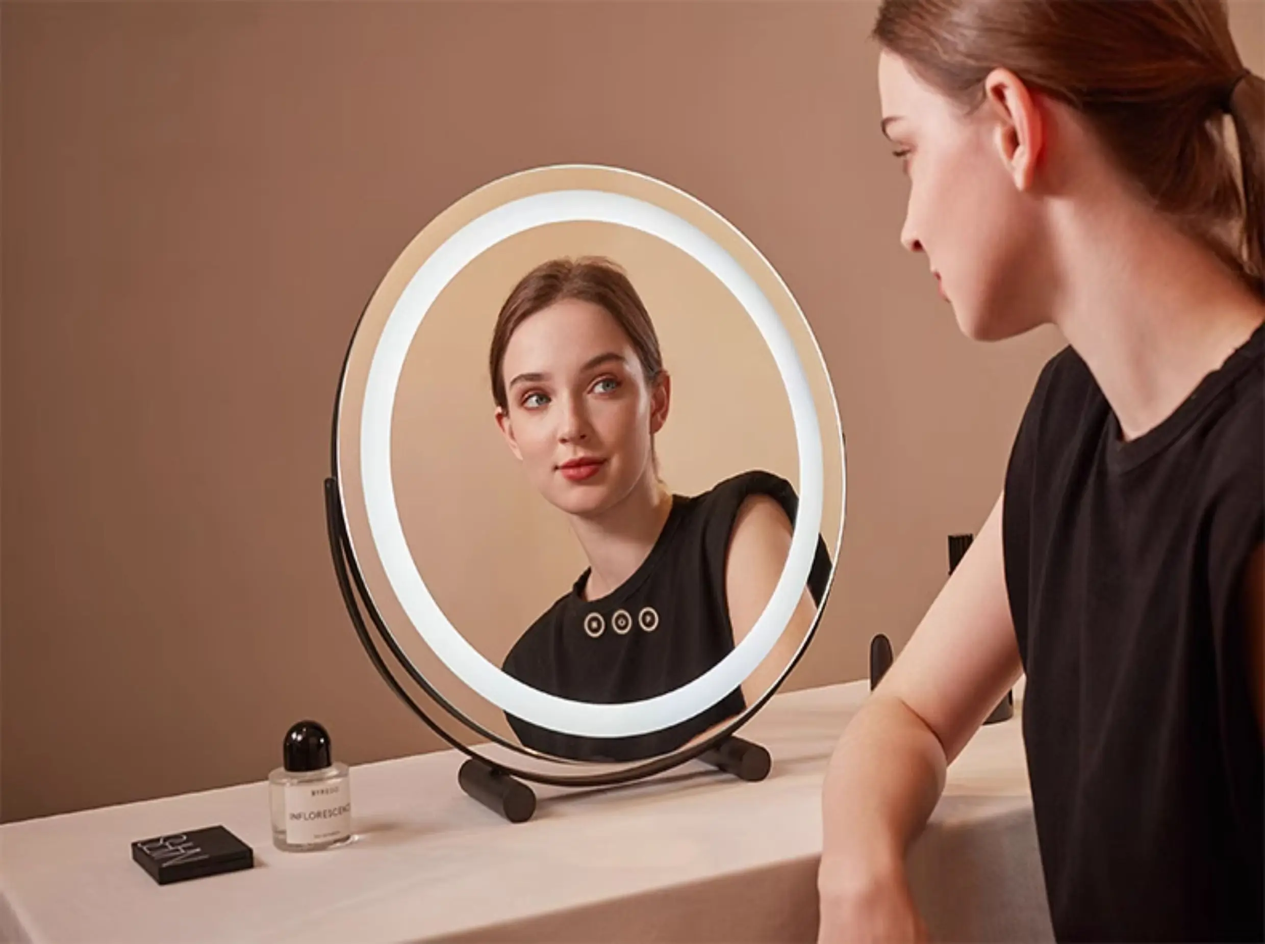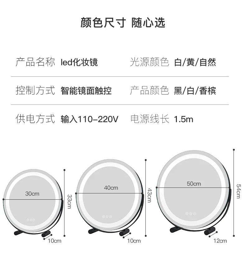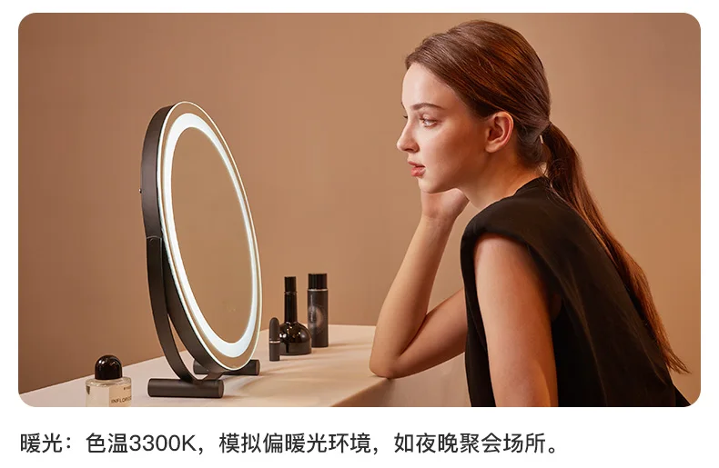 Dressing table mirror, makeup mirror, desktop bedroom, household circular makeup mirror, LED makeup table, makeup mirror