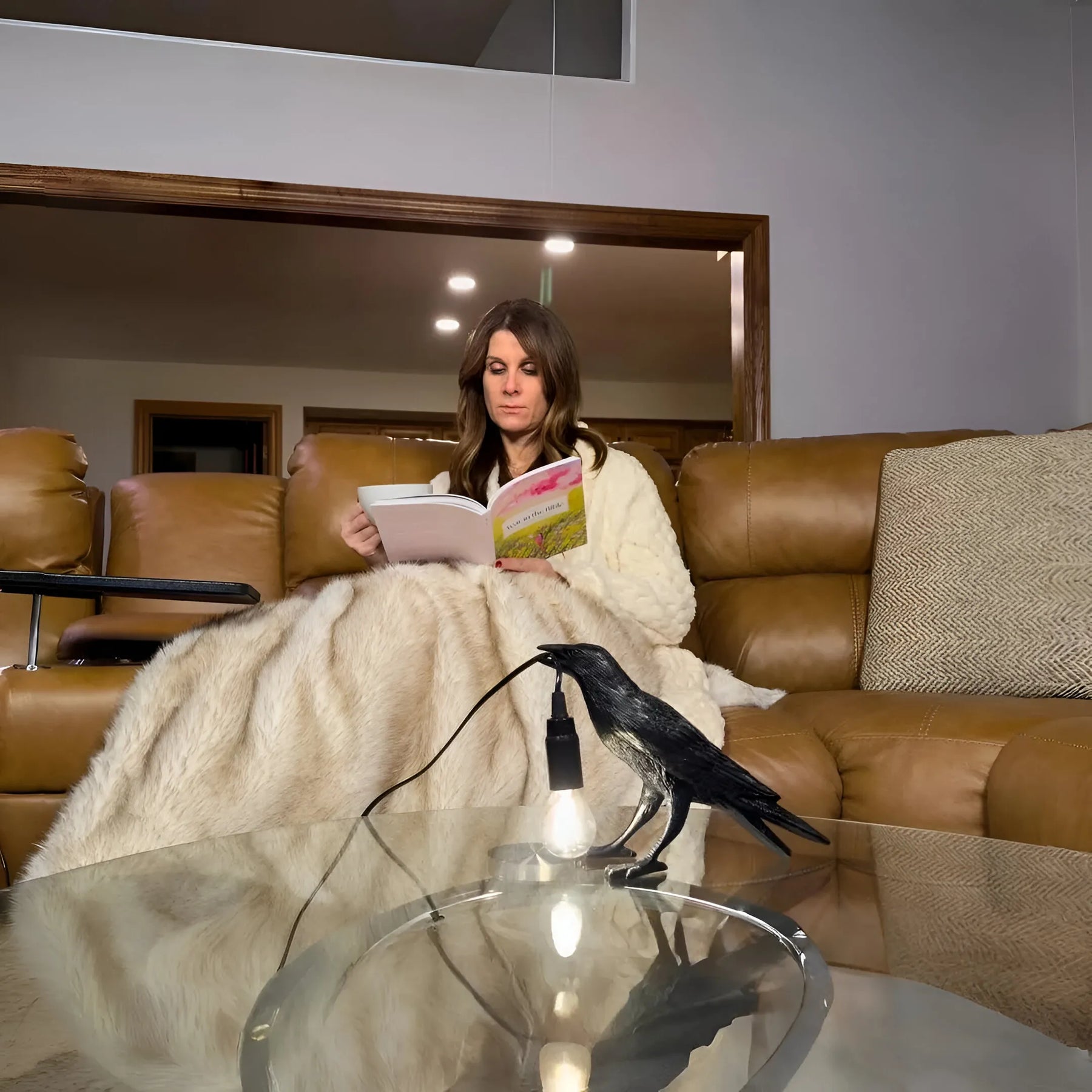 Bring a touch of artistic charm to your space with the Raven Resin Bird Table Lamp, a conversation-starting décor piece that blends modern art with warm, ambient lighting. Available in bold black or clean white, this sculptural lamp features a beautifully crafted raven holding a glowing bulb in its beak—an imaginative detail that instantly elevates any room. The resin body showcases lifelike feather textures and a striking silhouette, giving the lamp a gallery-style presence whether placed on a desk, nightstand, bookshelf, or accent table. With the included bulb and US plug, it’s ready to use straight out of the box, making it an effortless upgrade for apartments, bedrooms, offices, or creative studio spaces.