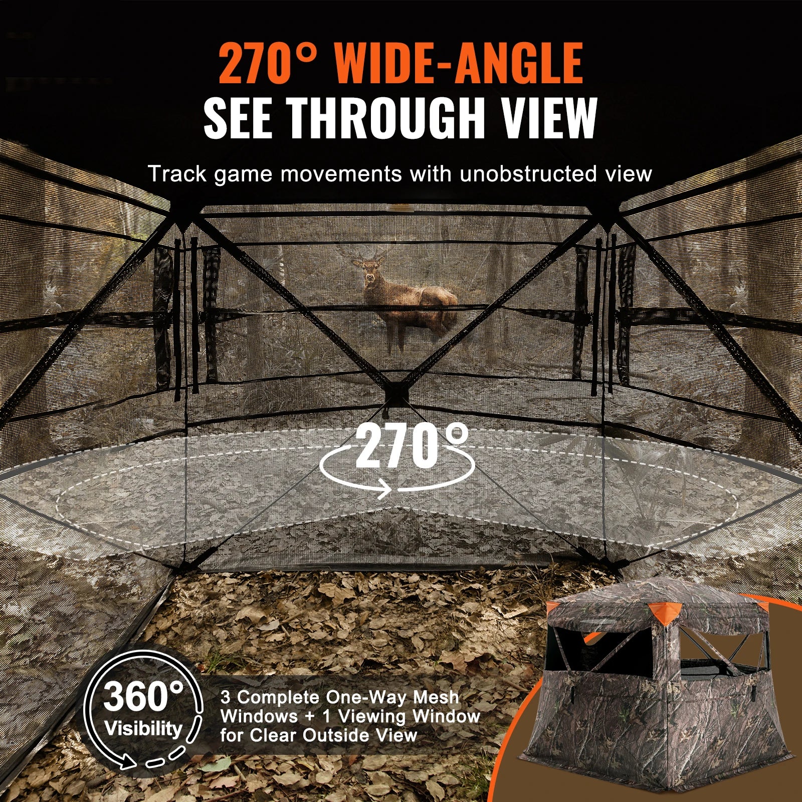 SucceBuy Hunting Blind 270° See Through Ground Blind 4-5 Person Pop Up Deer Blind for Hunting Portable for Turkey and Hunting