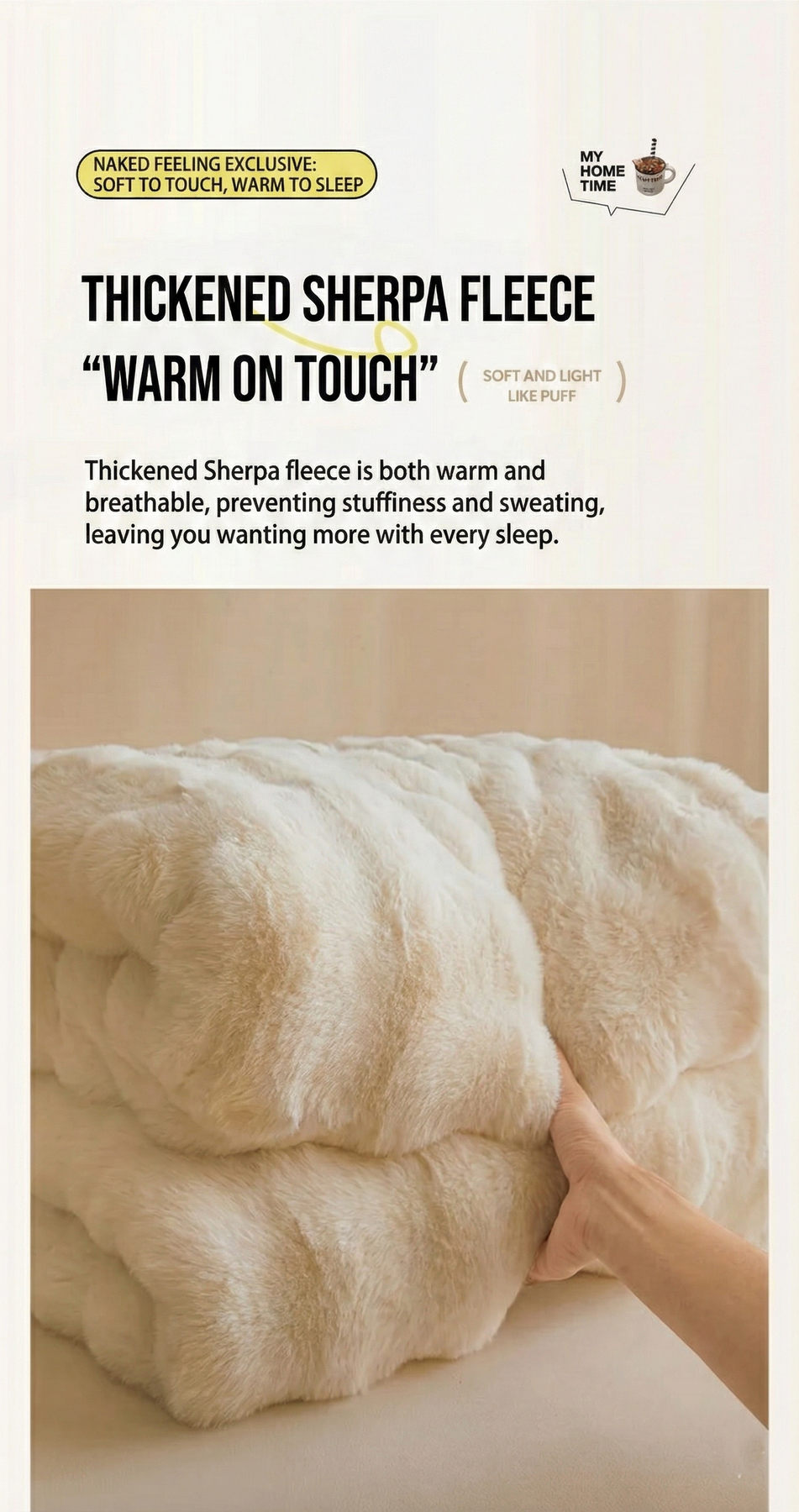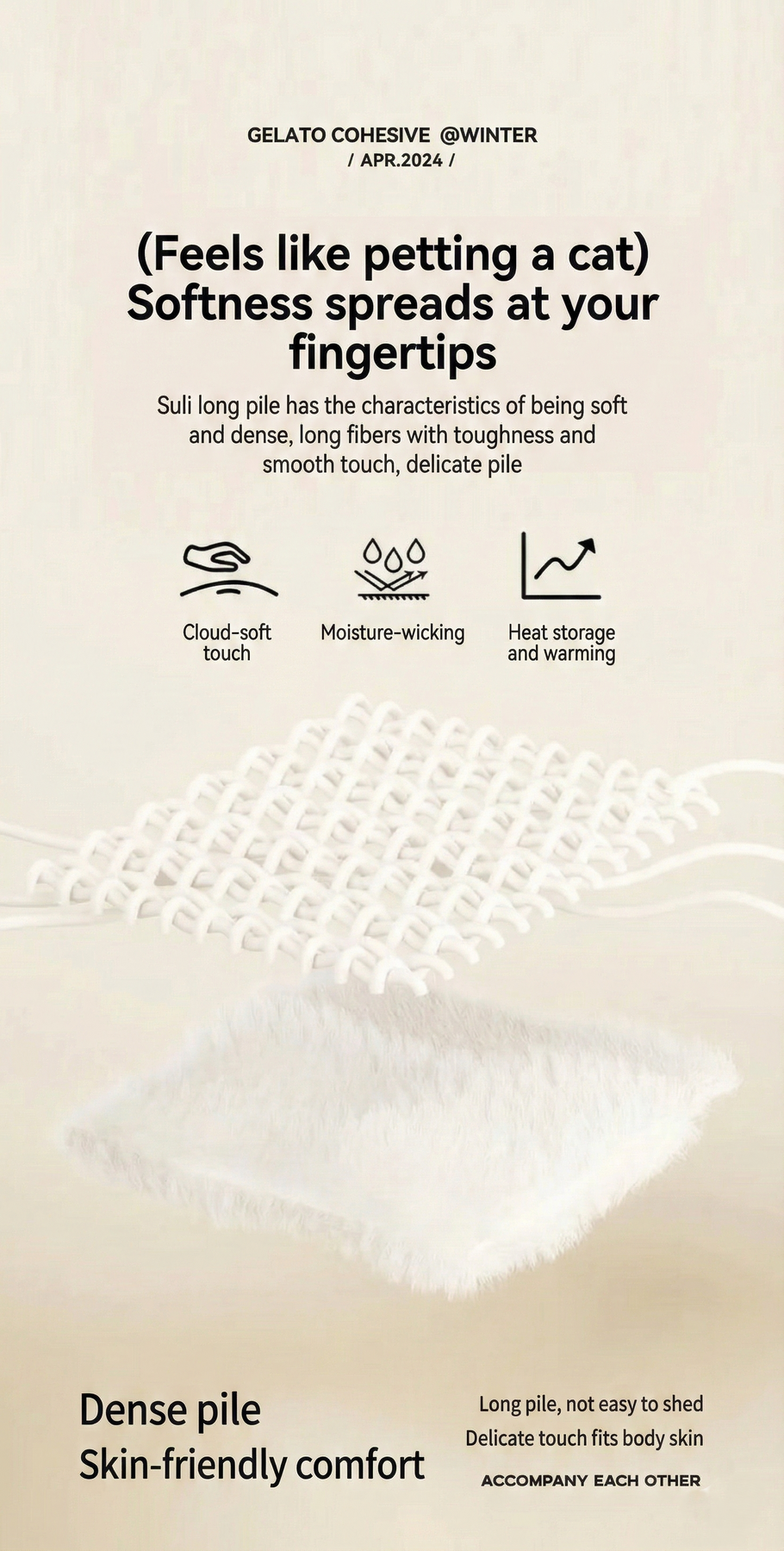 Made from richly textured faux rabbit fur with a plush bubble-fleece finish, offering a luxurious feel and visual elegance.