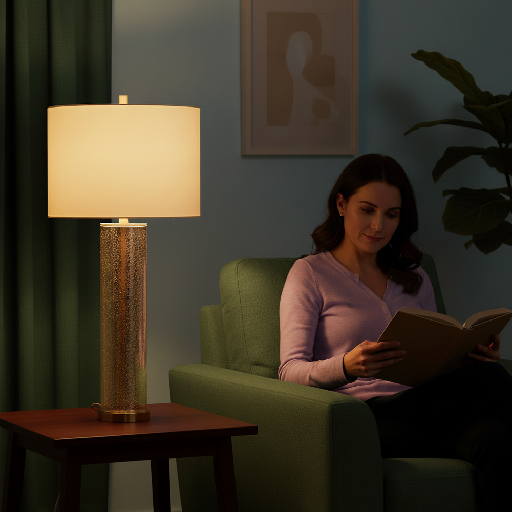This lamp not only spreads a warm, relaxing ambiance but also creates a subtle glimmering light effect that begs to be admired.