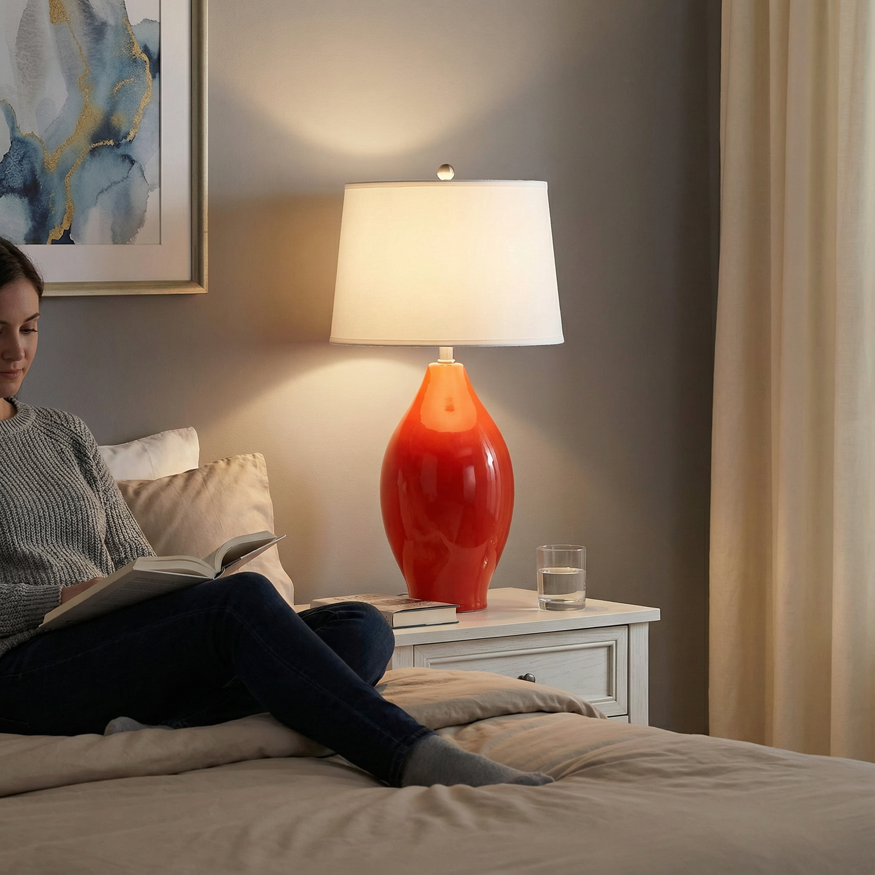 28"H RED LEMON SHAPE CERAMIC TABLE LAMP