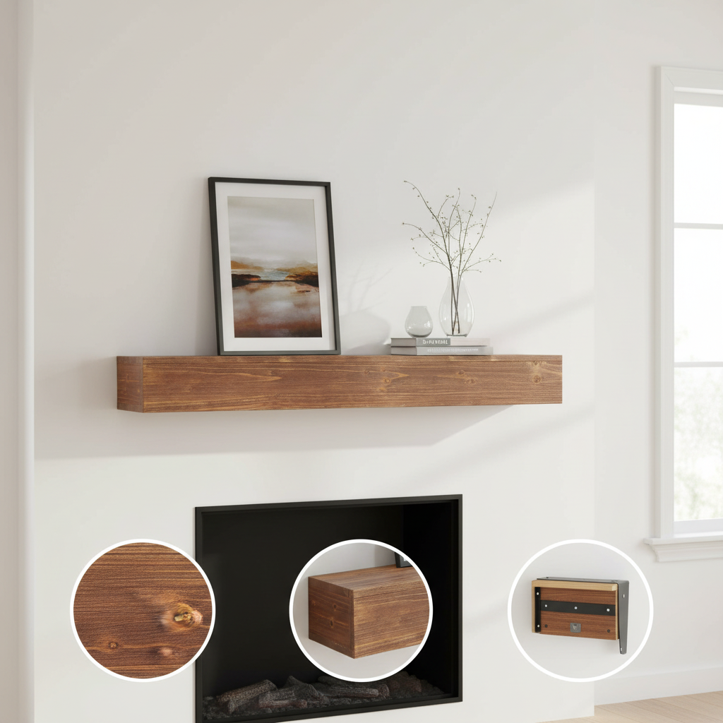 [RUSTIC WOOD MATERIAL]: Wood Fireplace Mantel is made of solid rustic cedar wood; Brushed surface finish with water-based coating; add a rustic touch to living rooms or kitchens