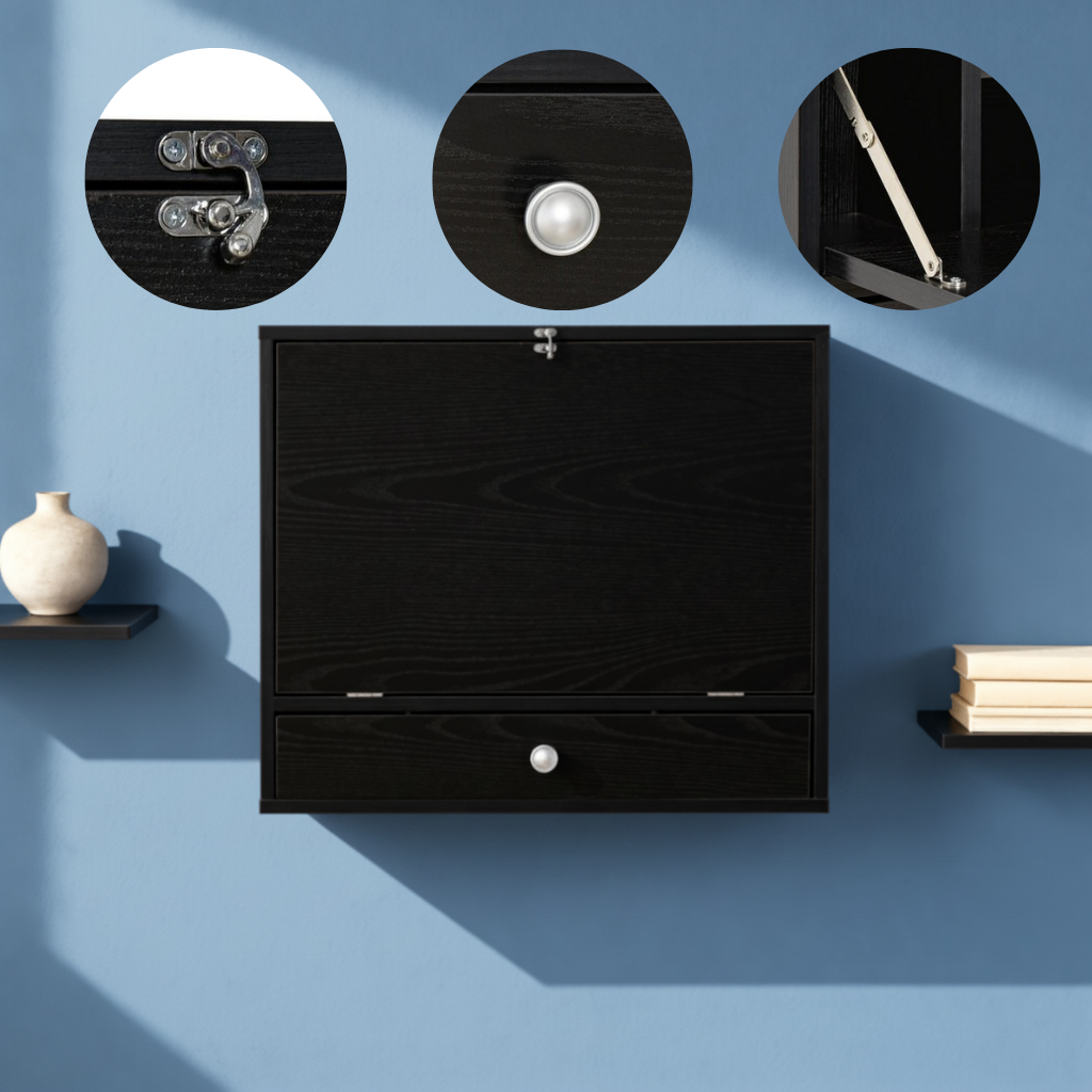 The wall-mounted computer desk is a perfect solution to those families with limited space. This office desk has a working panel that can be closed when not in use, meaning not only do you save space but create a convenient storage area. Similar to that. the drawer of this home desk adds extra storage room to your home, we also equip it with a silver knob for easy access. Finished in a warm elegant wood-look, this wall-mounted desk also adds a natural look to your home and compliments any room.