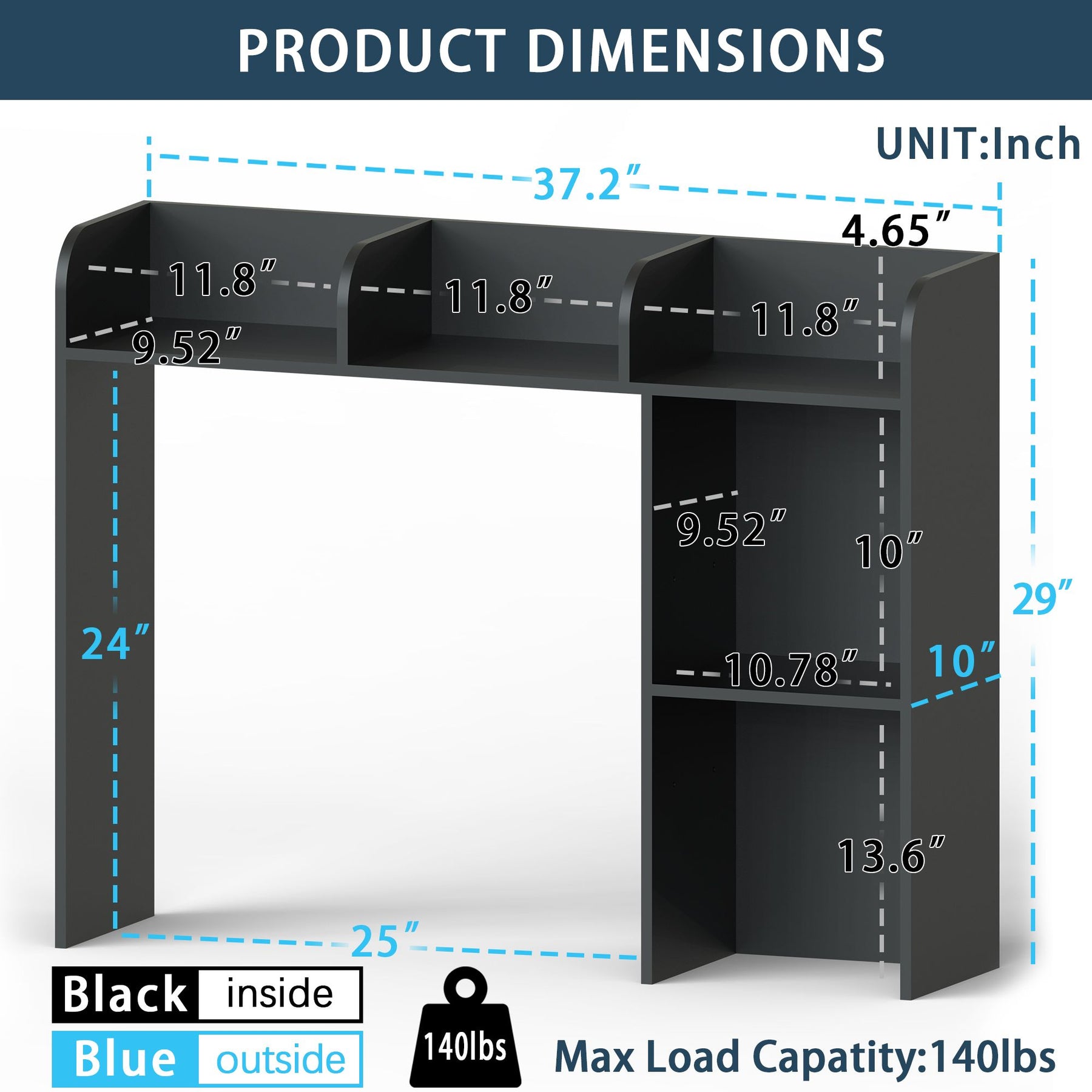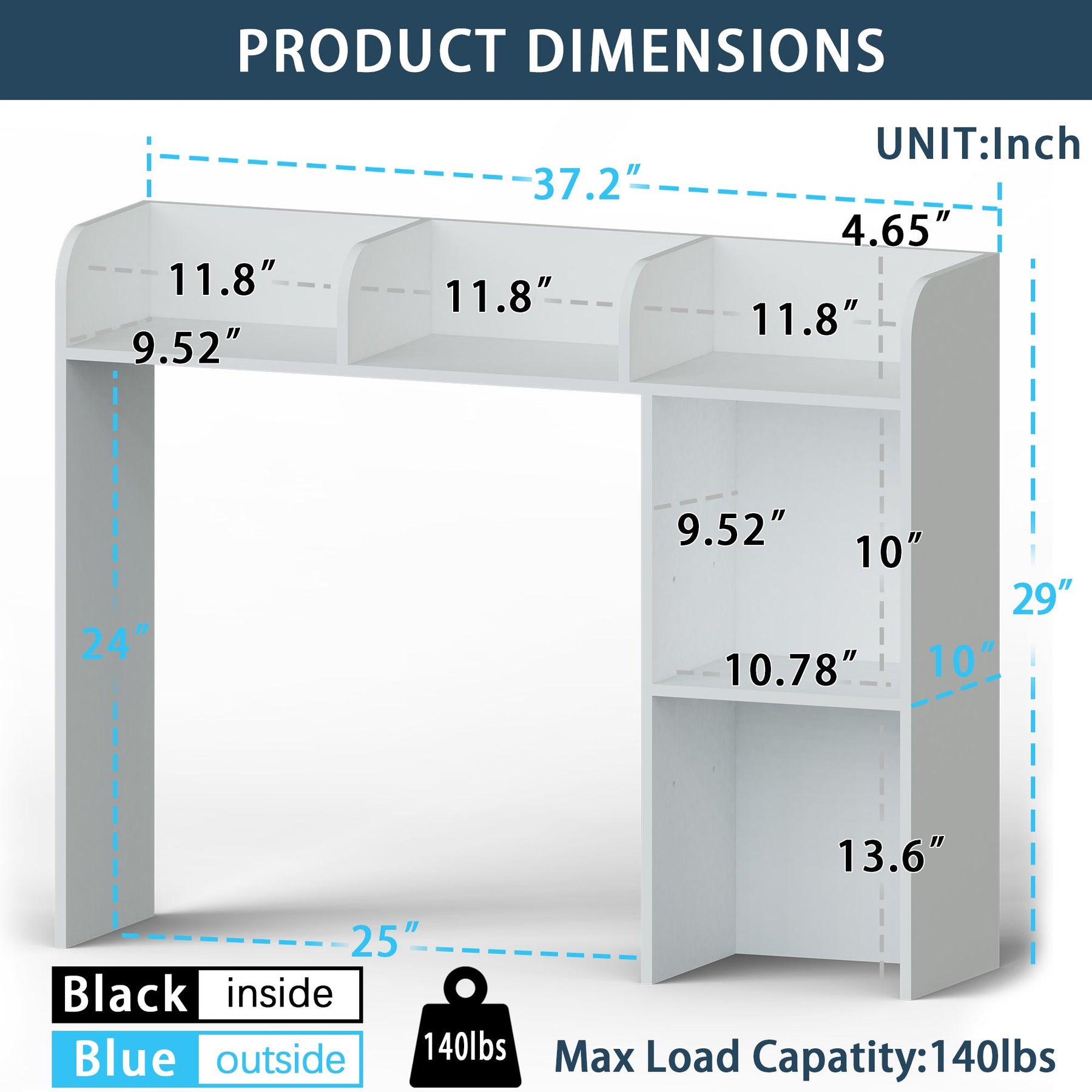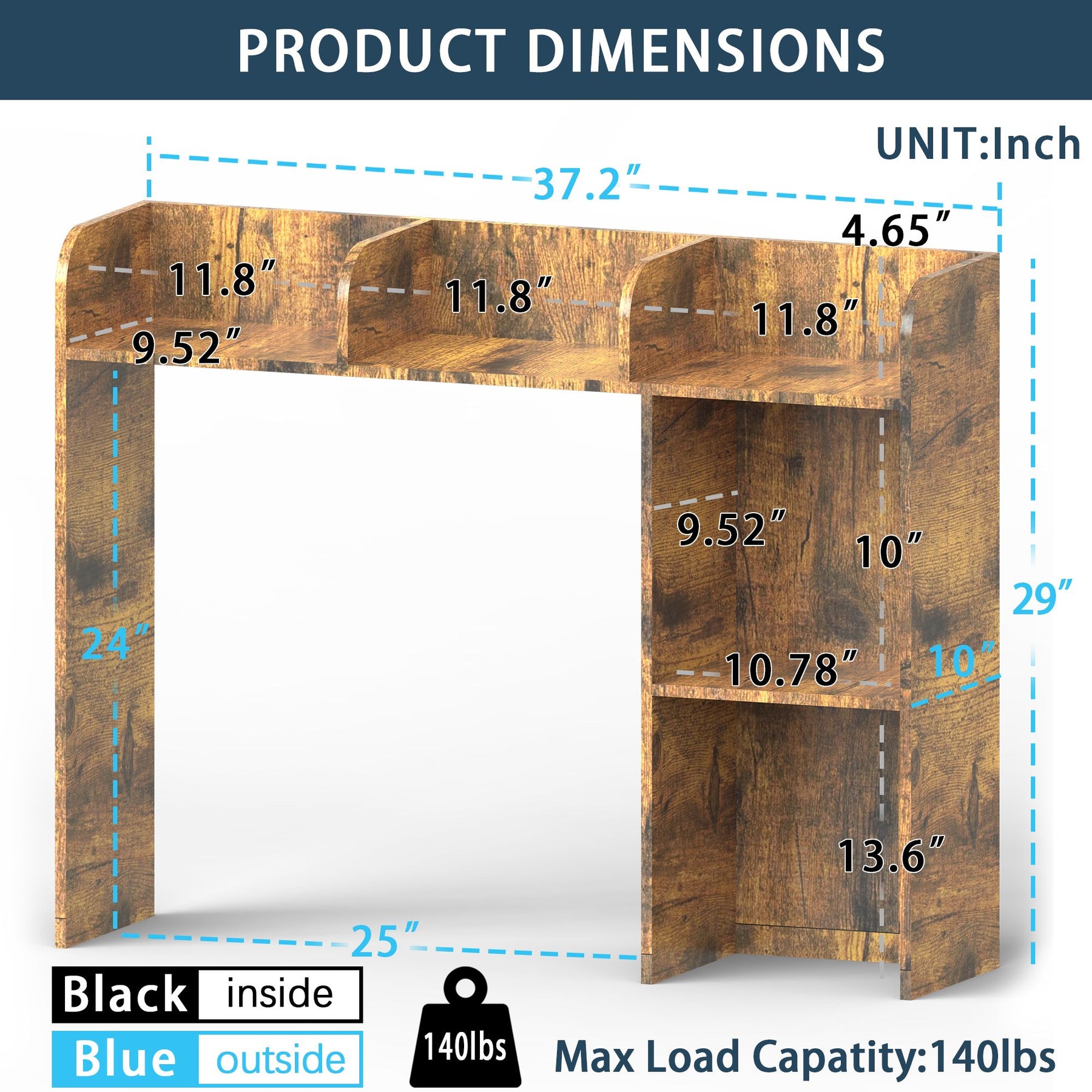 • - Overall Dimensions: 37.2"W x 10"D x 29"H
