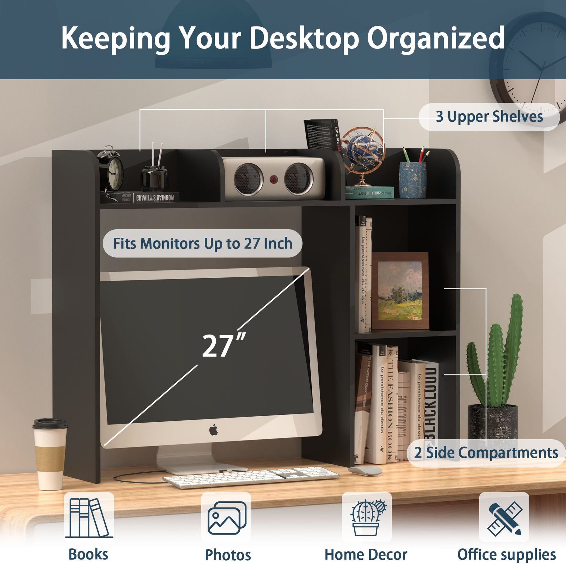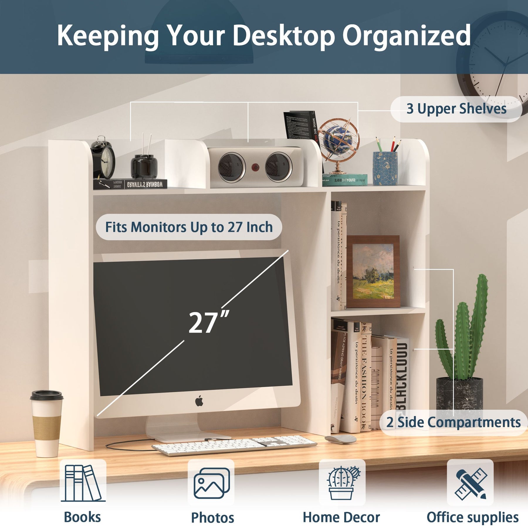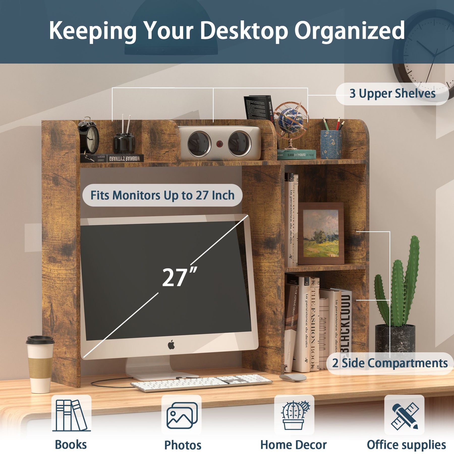 - Computer Desk Optimized: Specifically designed for computer desks up to 27 inches with 3 upper shelves and 2 large side compartments