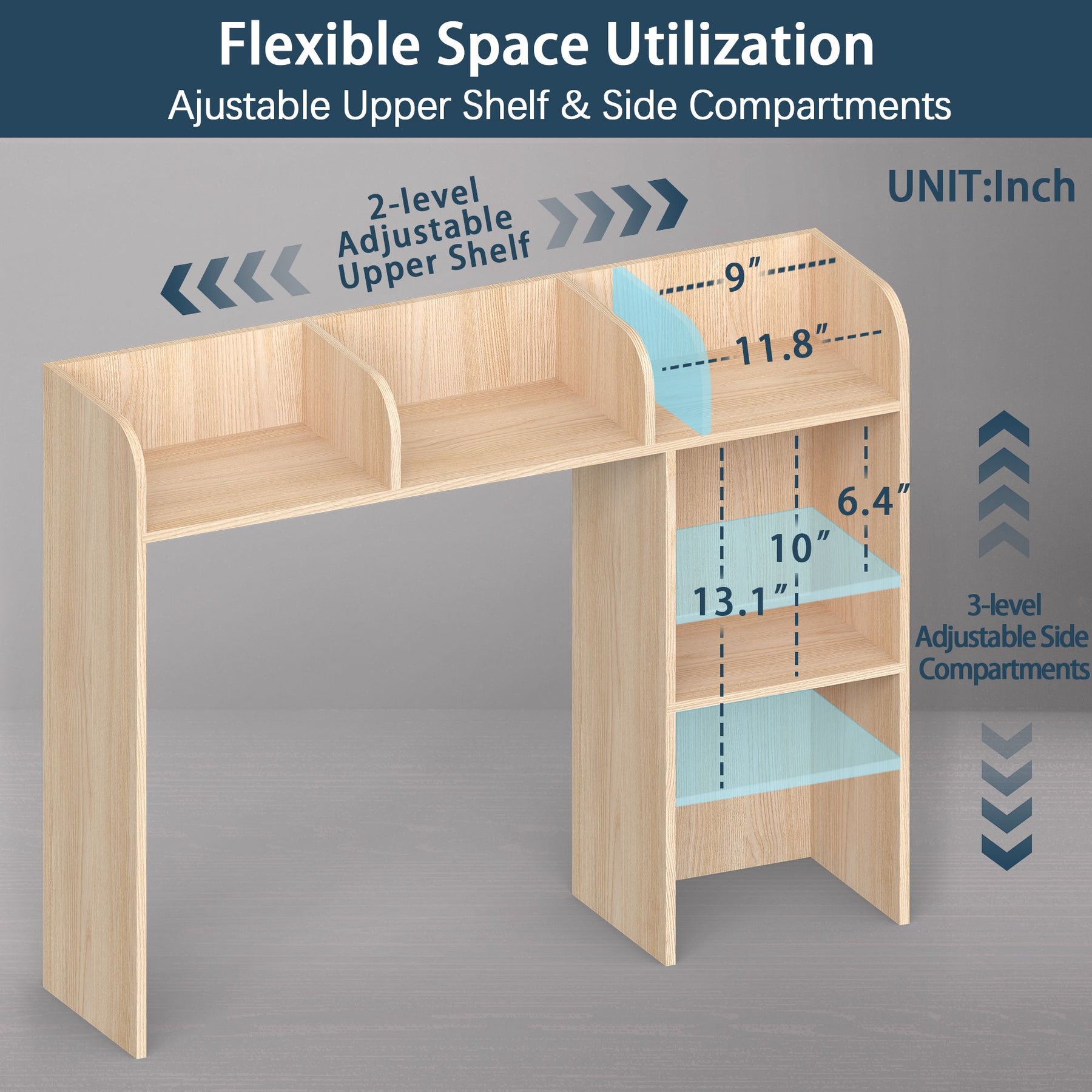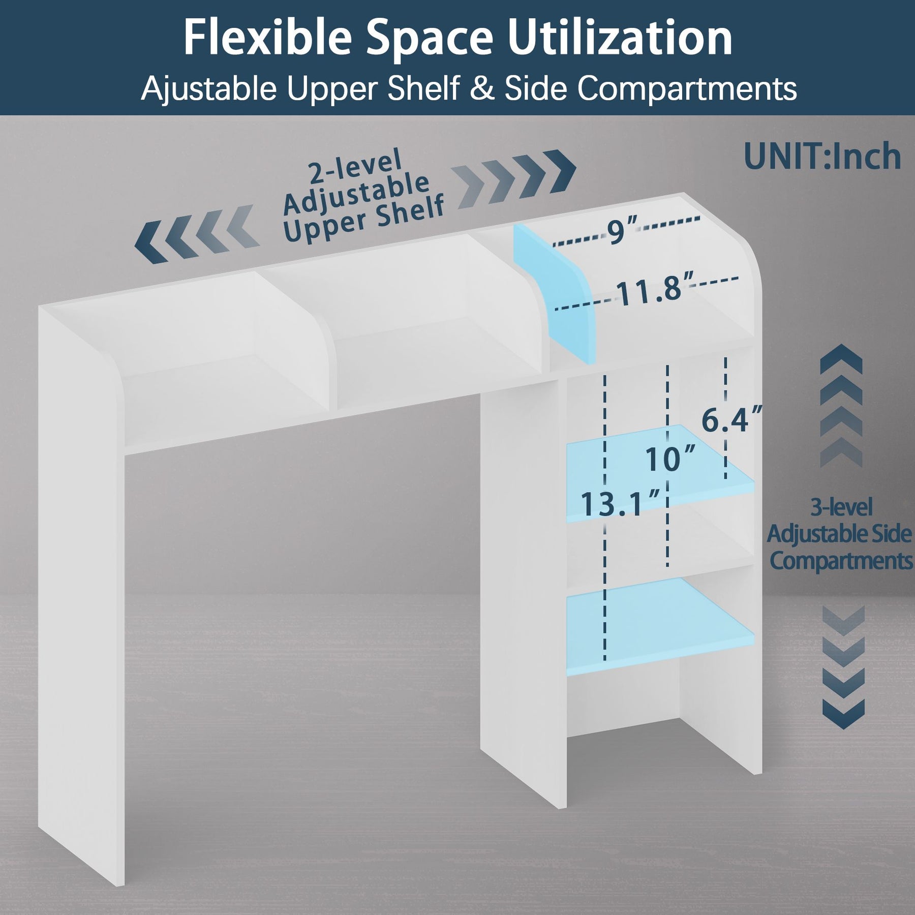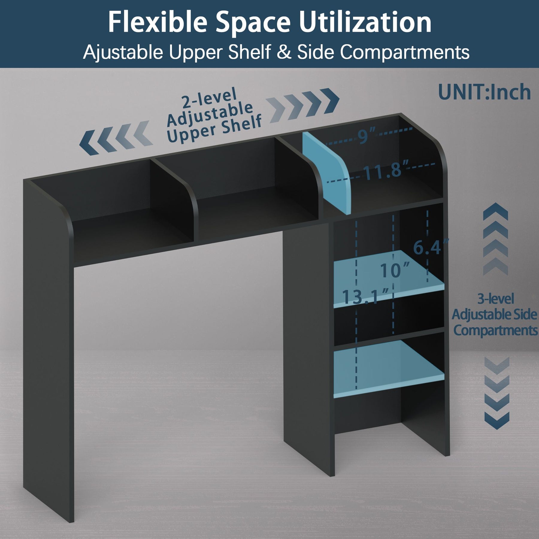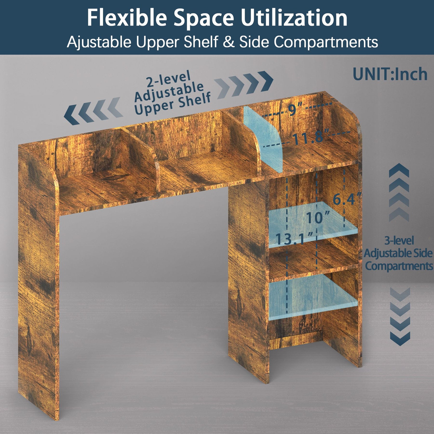 - Computer Desk Optimized: Specifically designed for computer desks up to 27 inches with 3 upper shelves and 2 large side compartments