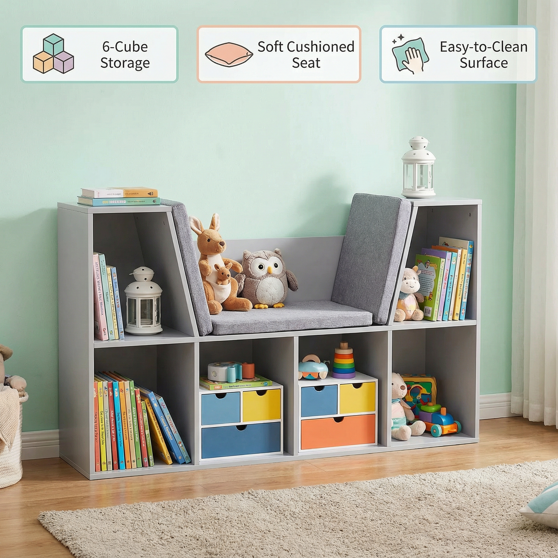 Kids’ Reading Nook Cube Organizer – 6-Cube Storage with Seat | Playroom Bookcase | Trufairs