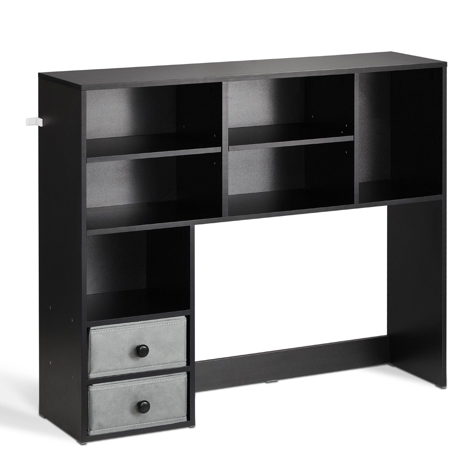 VEVOR Desktop Bookshelf, 3-Tier Desktop Storage Organizer, 37" x 10" x 31.1" Office Storage Rack Wood Display Shelf, Desktop Bookshelf Hutch with Two Fabric Drawers, for Office, Home & Dorm, Black