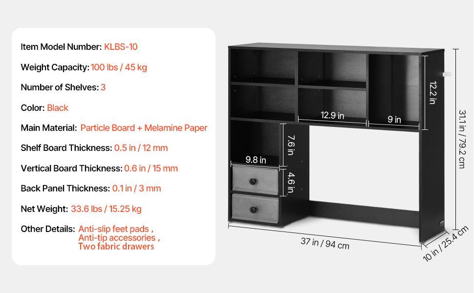 - Sturdy and Durable: Our desktop hutch excels in load-bearing capacity and stability. The shelves, made from 0.5-inch thick particleboard, can support up to 100 lbs / 45 kg, providing strong support for all kinds of books. The smooth surface is waterproof, scratch-resistant, and easy to clean, making it ideal for busy study or work environments.