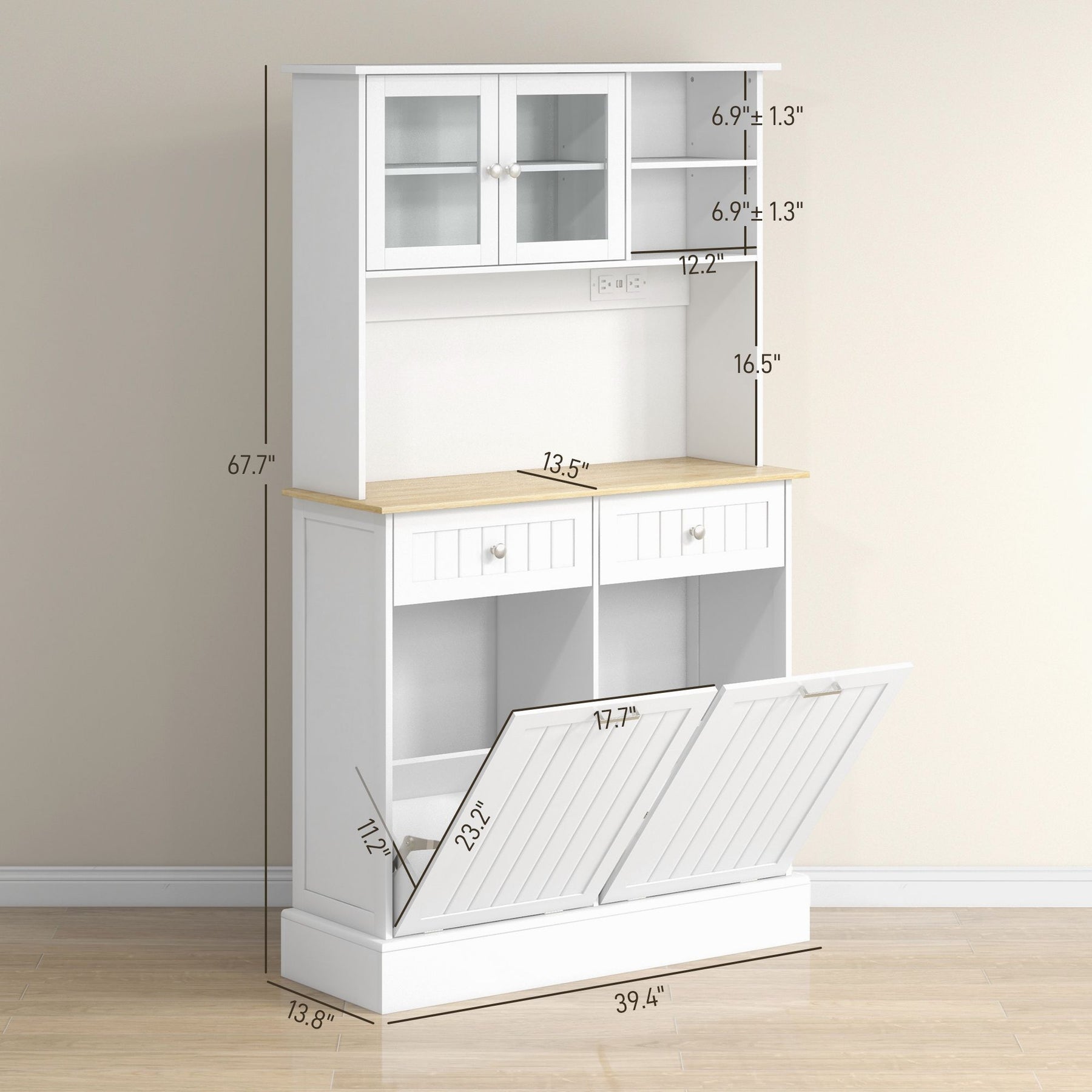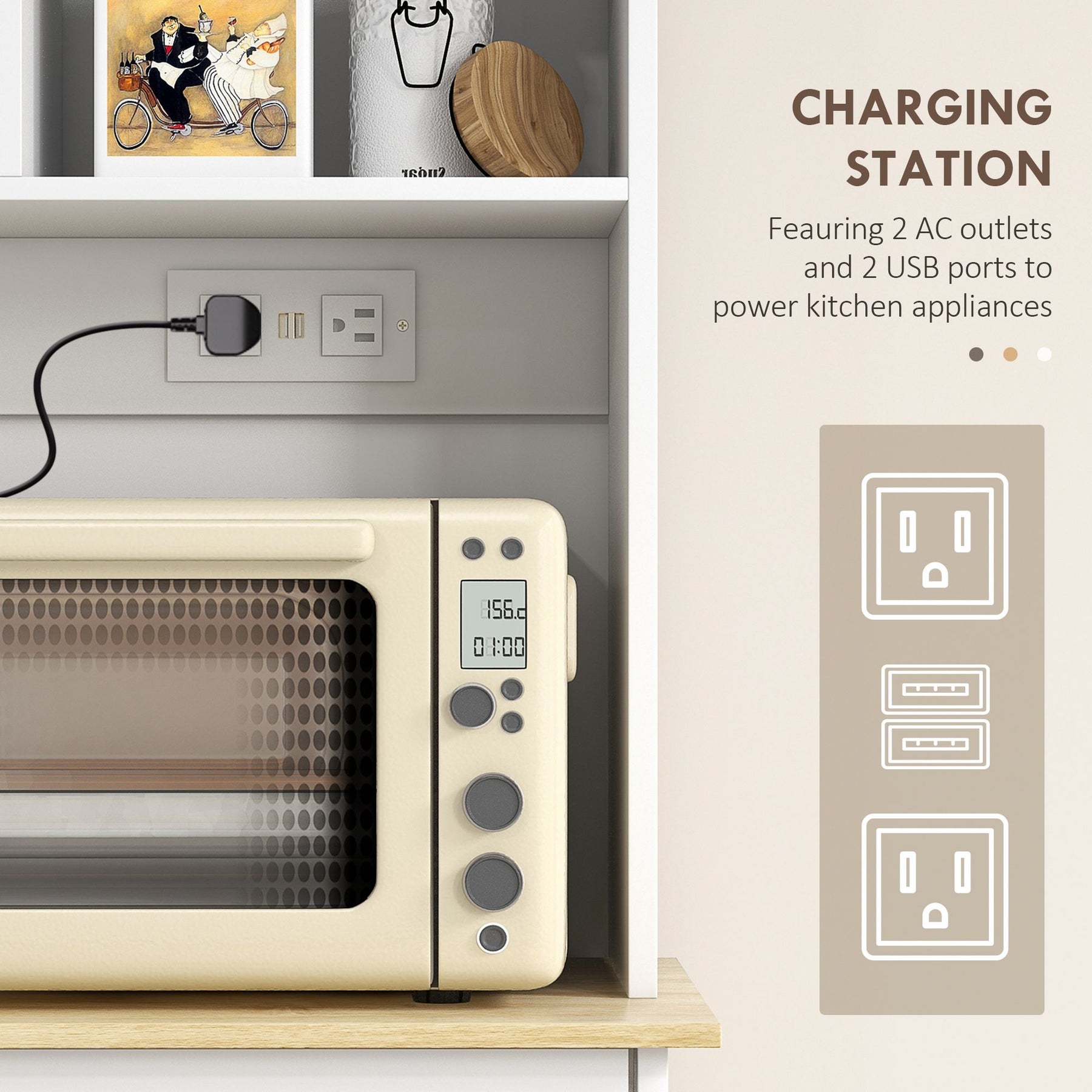 HOMCOM 68" Storage Pantry Cupboards, Freestanding Cabinet w/ 2 Tilt Out Cabinets & Build-in Charging Station for Dining Room, White