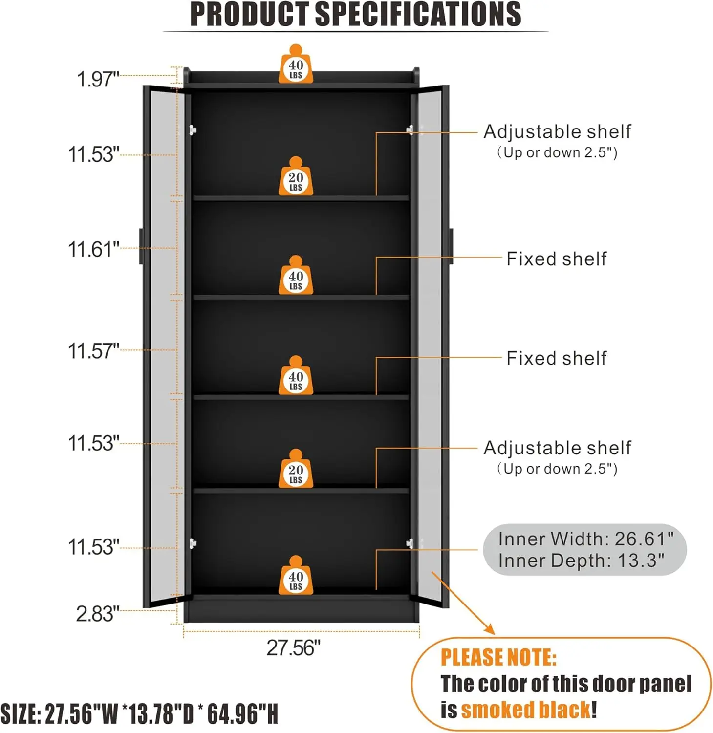 | Product Dimensions | 13.78"D x 27.56"W x 64.96"H |