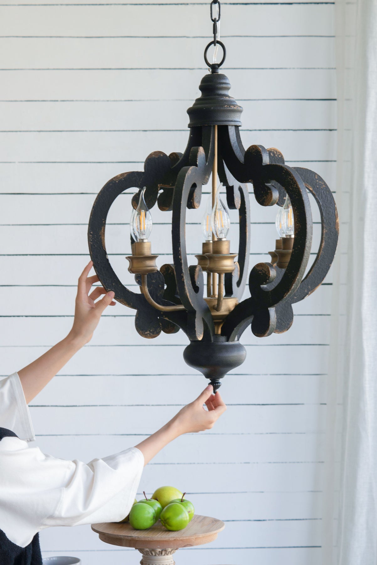 With an intricate design and antique whitewashed finish, the 6-Light Chandelier radiates warm light in timeless, sophisticated style. Classic curves and neutral color combine to make this piece a versatile, eye-catching light fixture. Let this piece bring a vintage appeal to an entryway, master bathroom or dining room.