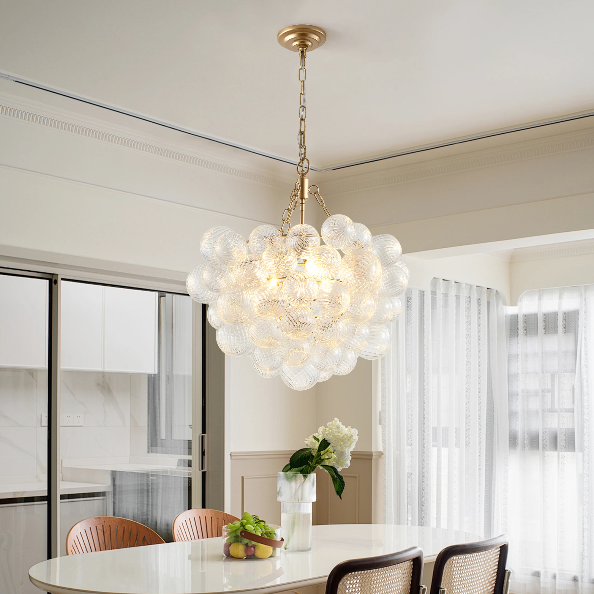 - Threaded transparent glass ball lampshade: The transparent glass ball lampshade is equipped with fine threaded design, showcasing a simple yet exquisite beauty. The light spreads evenly through the glass ball, creating a warm and soft atmosphere.