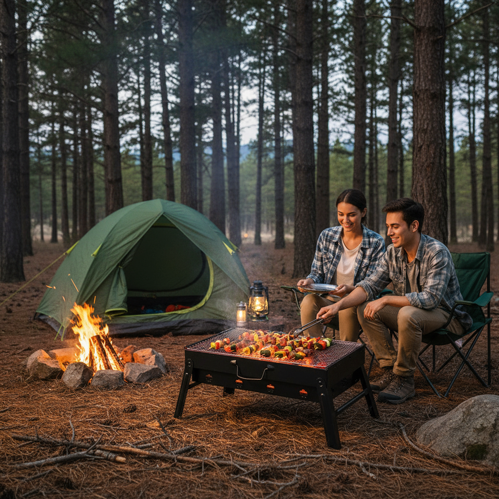 *PERFECT FOR OUTDOOR: Our portable BBQ grill is a great tool for outdoor camping, backpacking, picnics, tailgate parties, camping, t and grilling in small spaces; It\'s perfect to cook delicious food on our portable BBQ grill like pork, burgers, fish, vegetables, steak, hot dogs, corn and more. Suitable for 4-6 group.