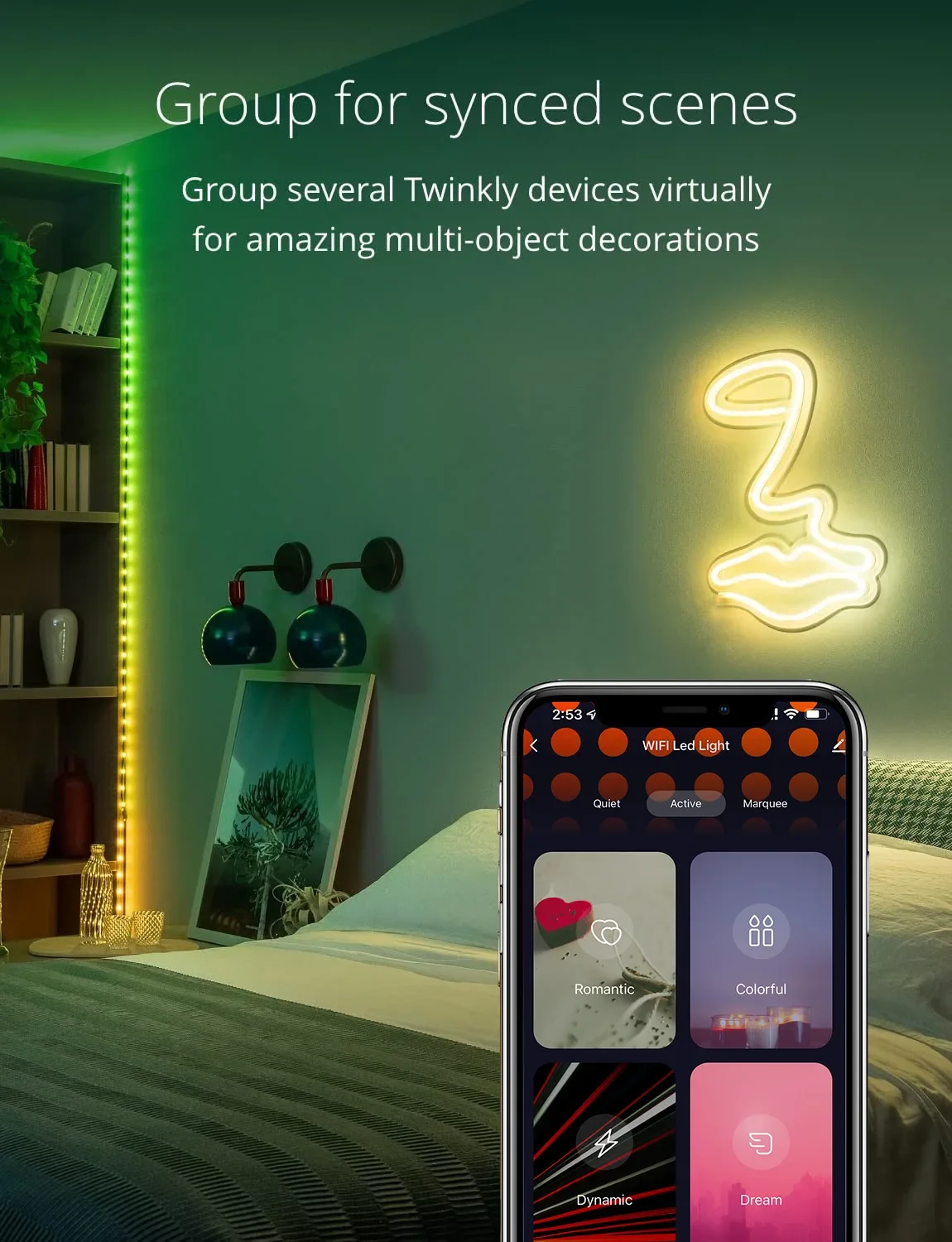 ---Group several twinkly devices virtually for amazing multi-object decorations.Pixel-perfect layout to play advanced effects.