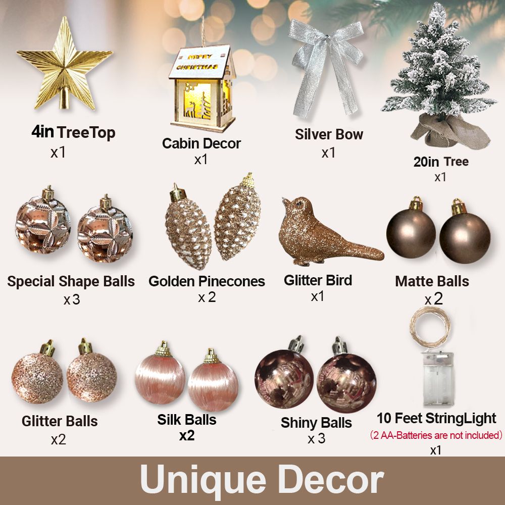 [Base: No Assembly Required ]The tree stem and base are intergrated. Just enjoy decorating the mini tree with ornaments. It's convenient to store and carry.
