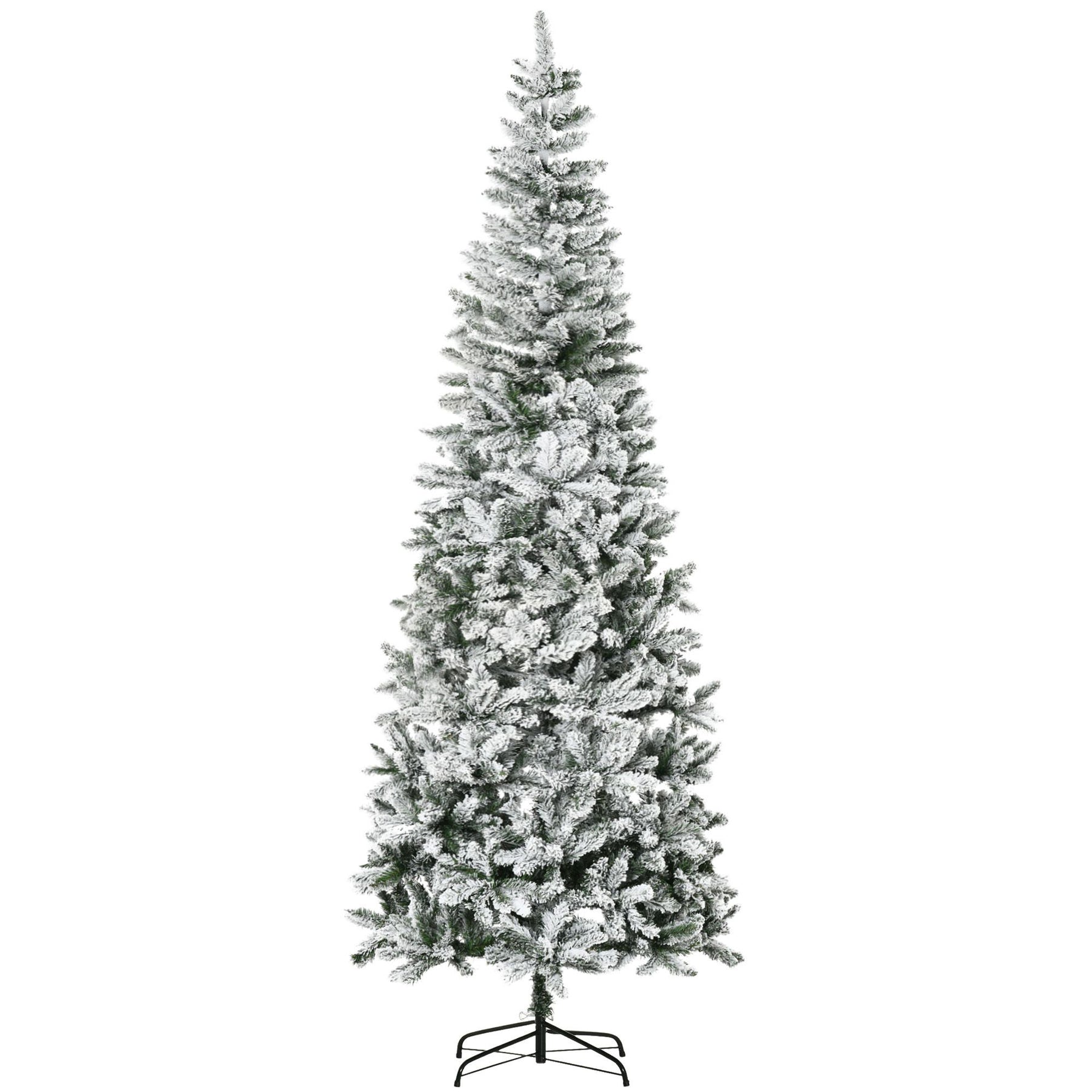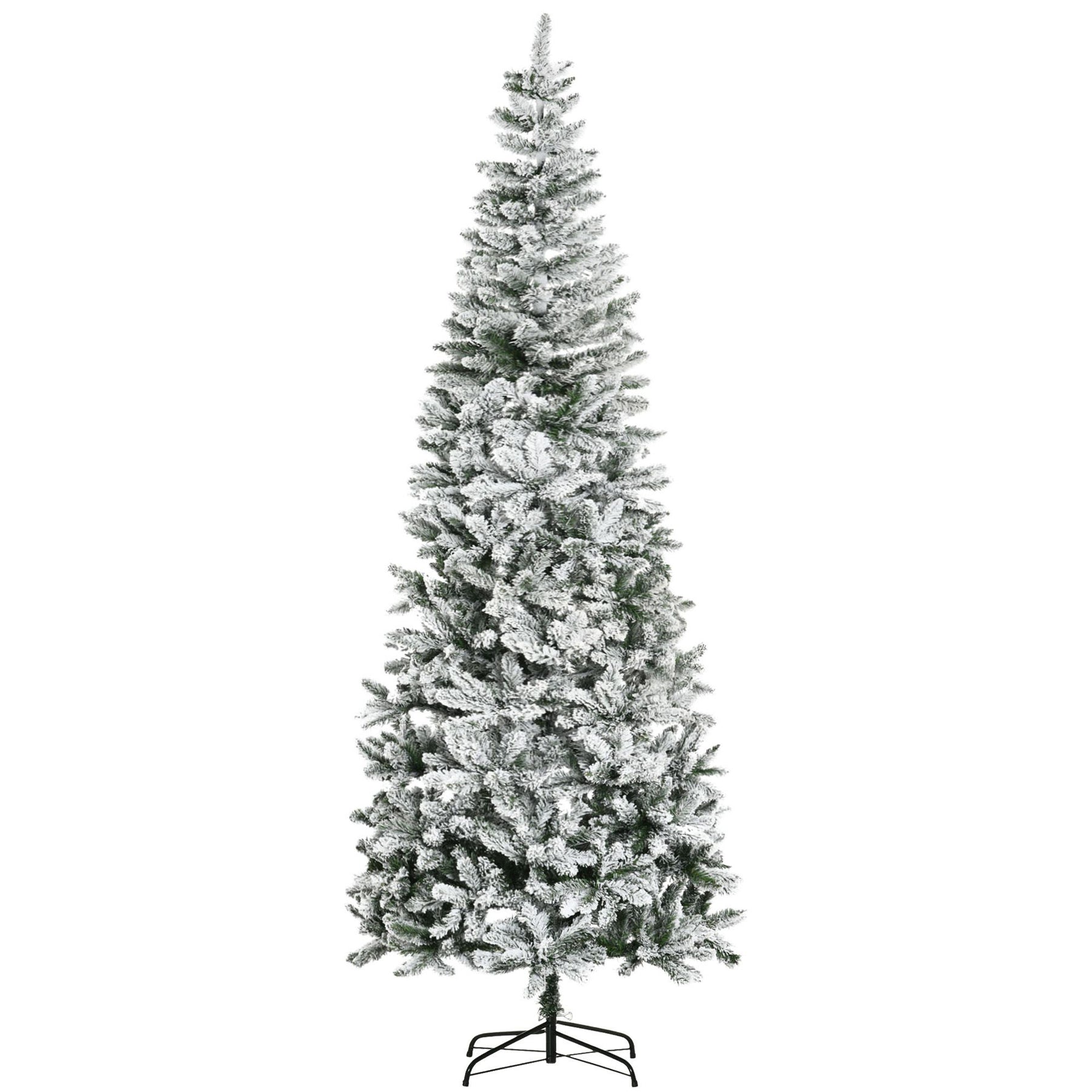 9ft Unlit Snow-Flocked Slim Pine Artificial Christmas Tree with Realistic Branches and 1084 Tips