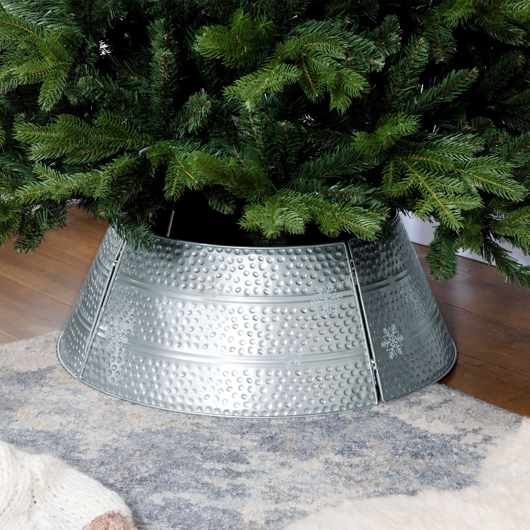 HOMCOM Christmas Tree Collar Steel Tree Ring Skirt Home Xmas Decoration with Snowflake Engraved, 26" Base, Silver